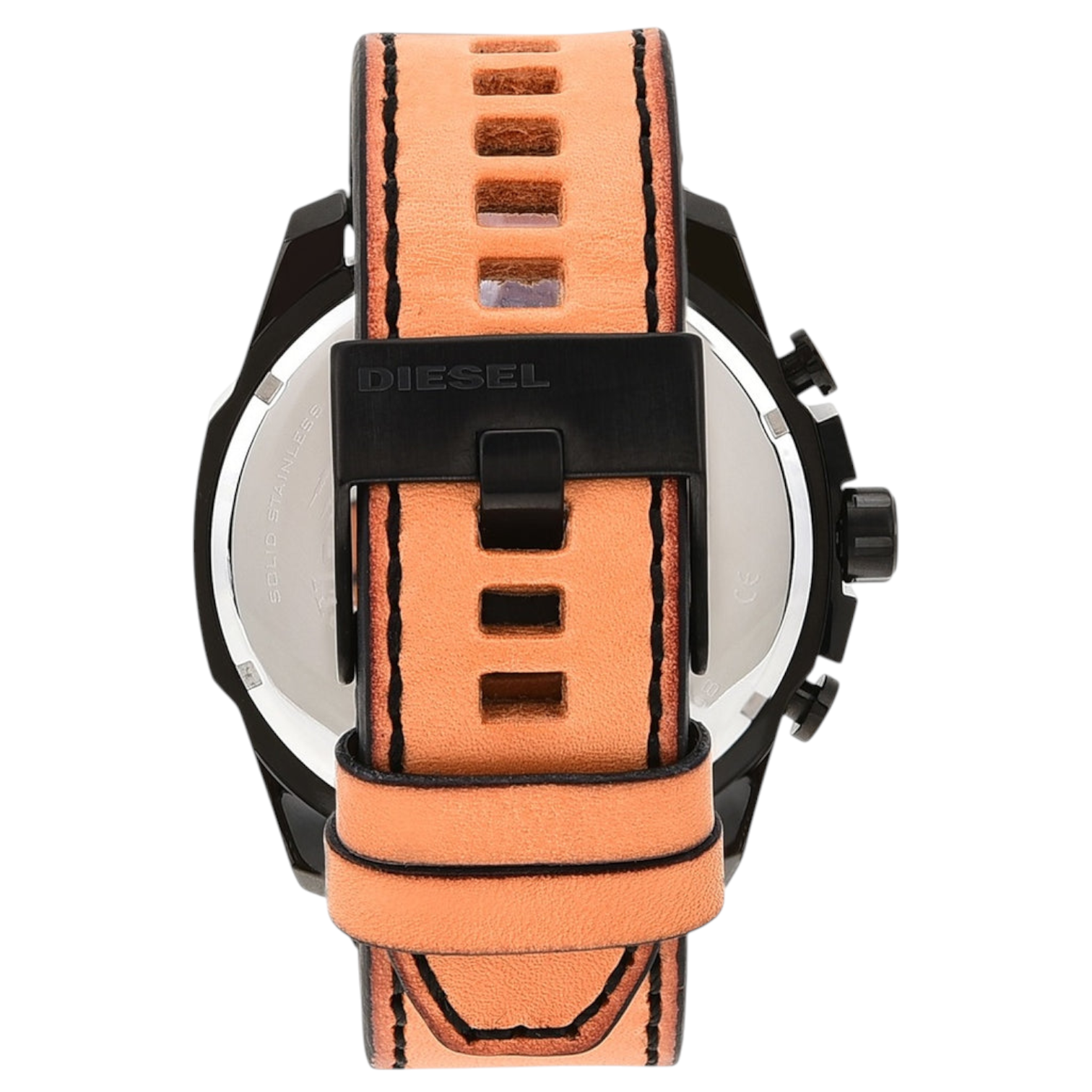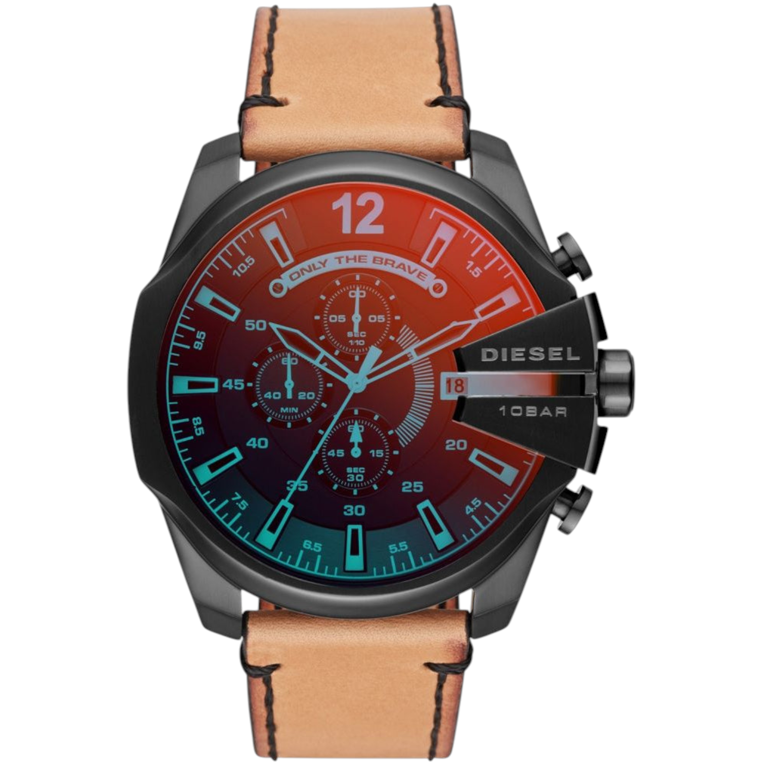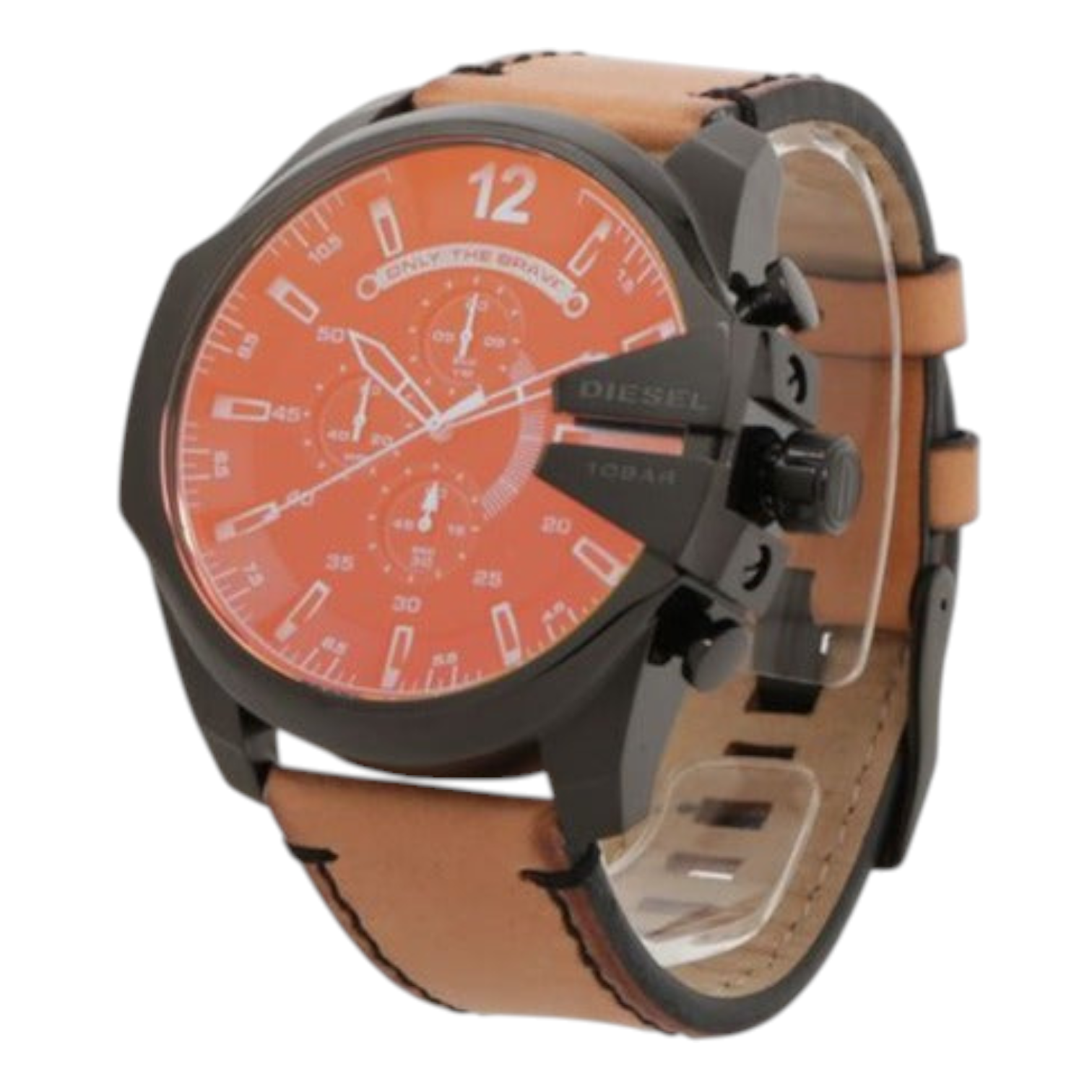 Original Diesel men’s watch, model Mega Chief DZ4476, black color, brown natural leather band