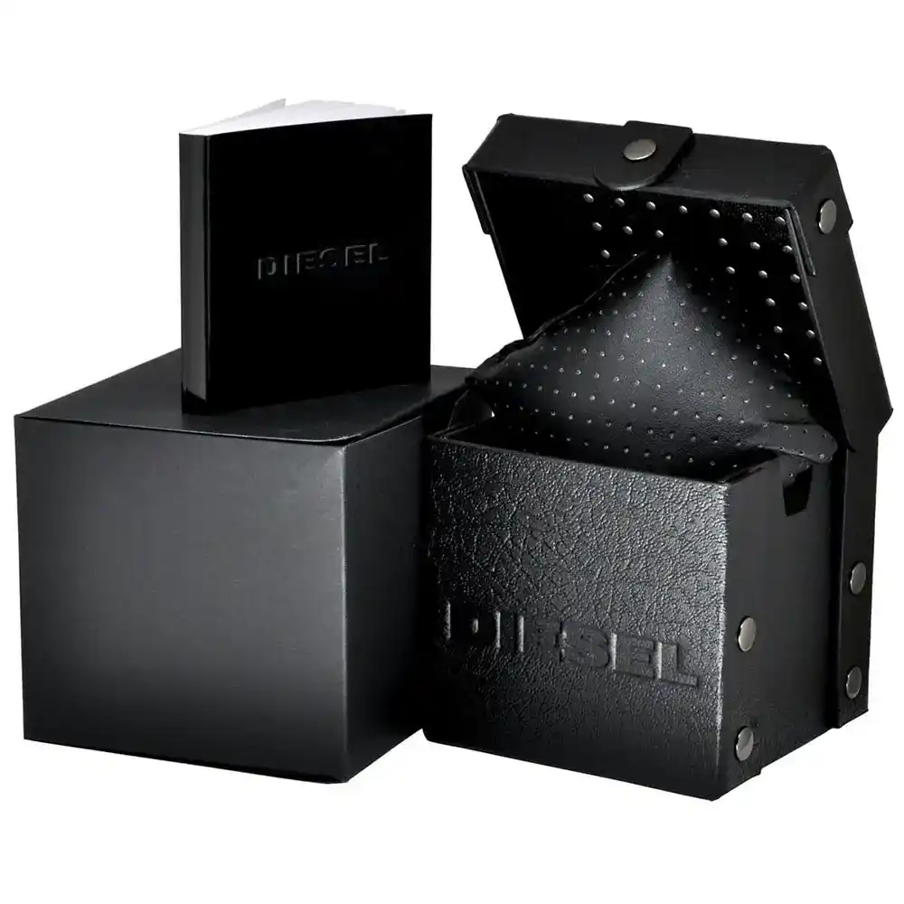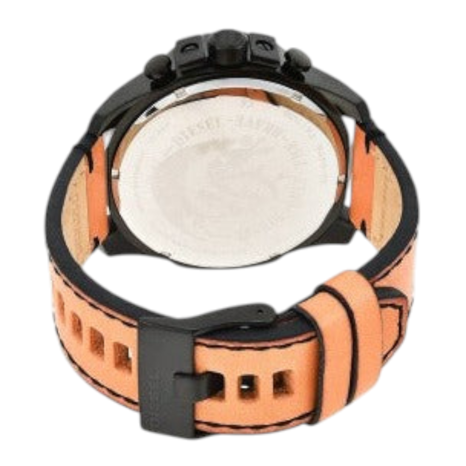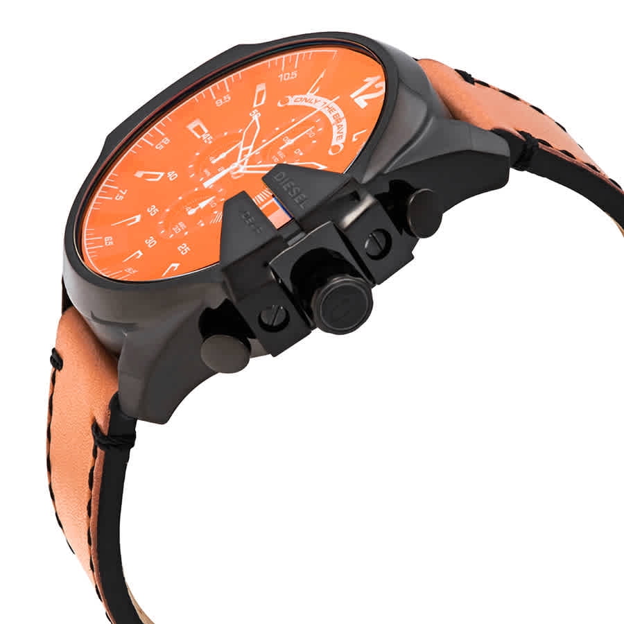 Original Diesel men’s watch, model Mega Chief DZ4476, black color, brown natural leather band