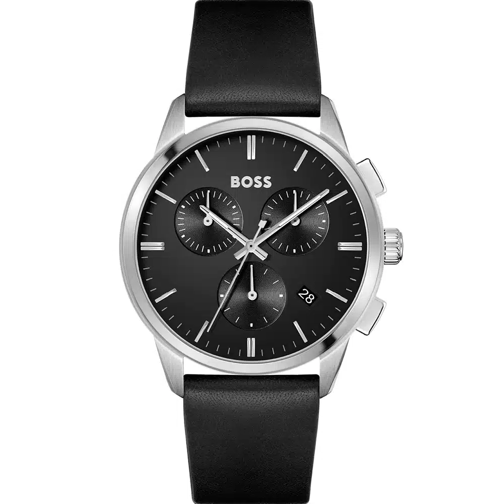 Original Hugo Boss watch for men, model (Dapper) 1513925, black color, natural leather band, black color