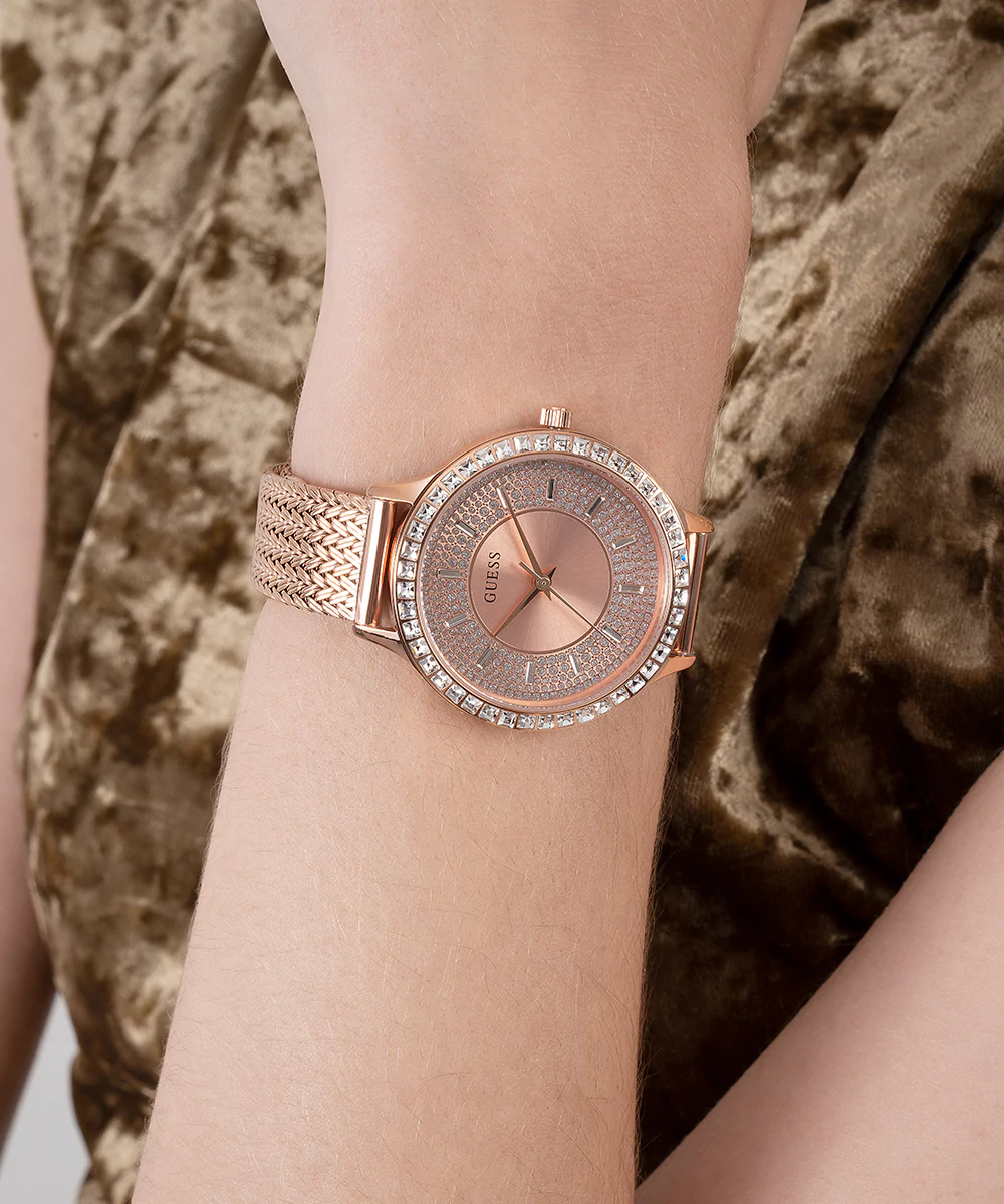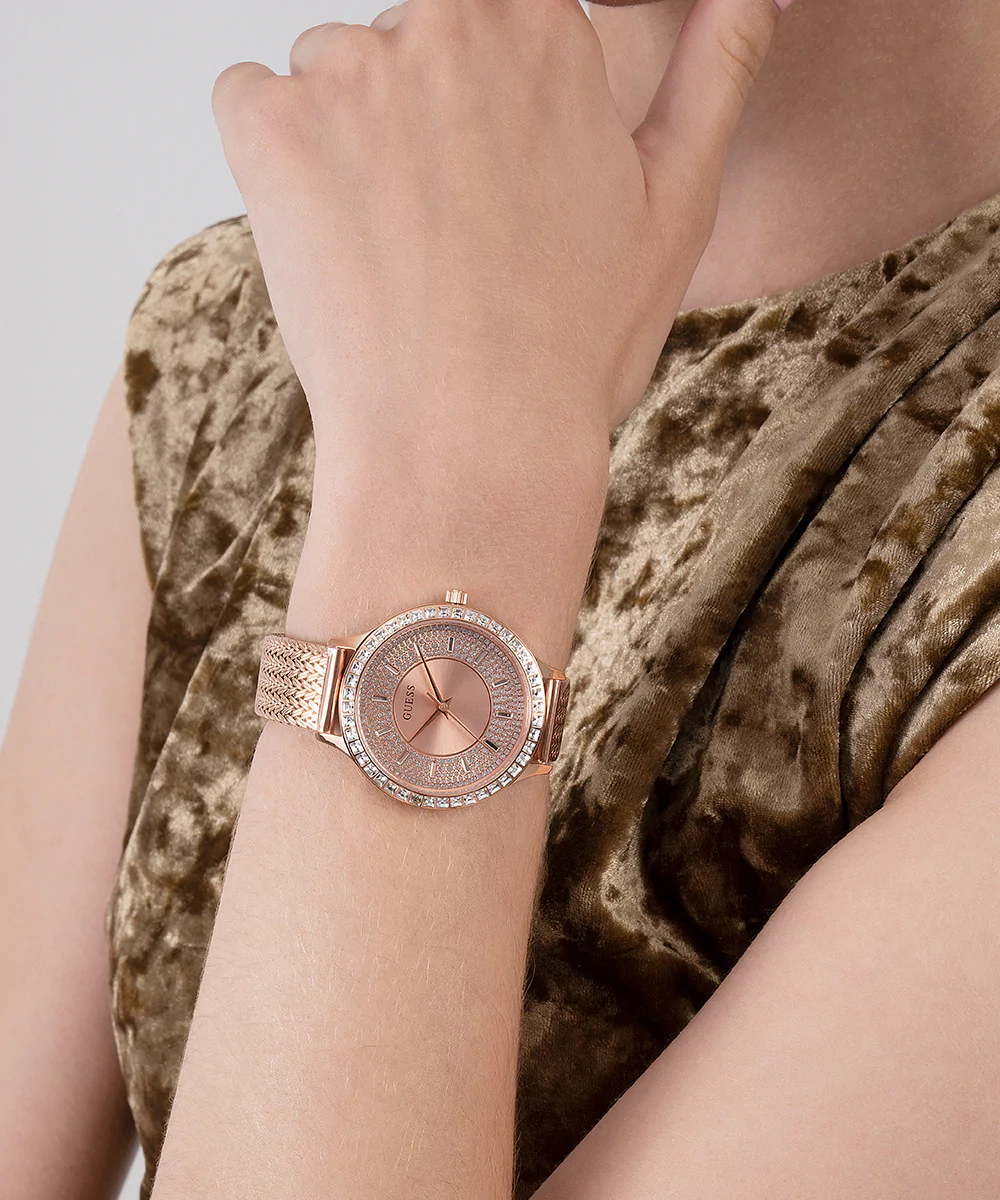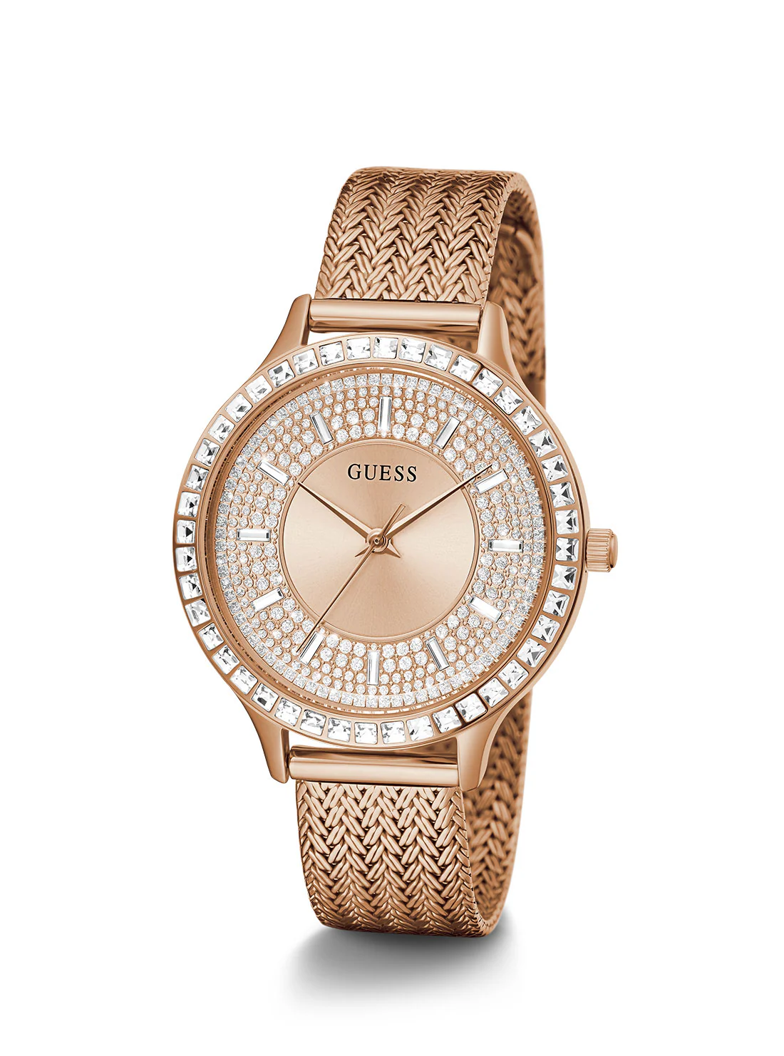ساعة جيس للنساء اصلية موديل (كونفيتي) Confetti W0774L3 بلون وردي ونحاسي واستيك معدن بلون نحاسي