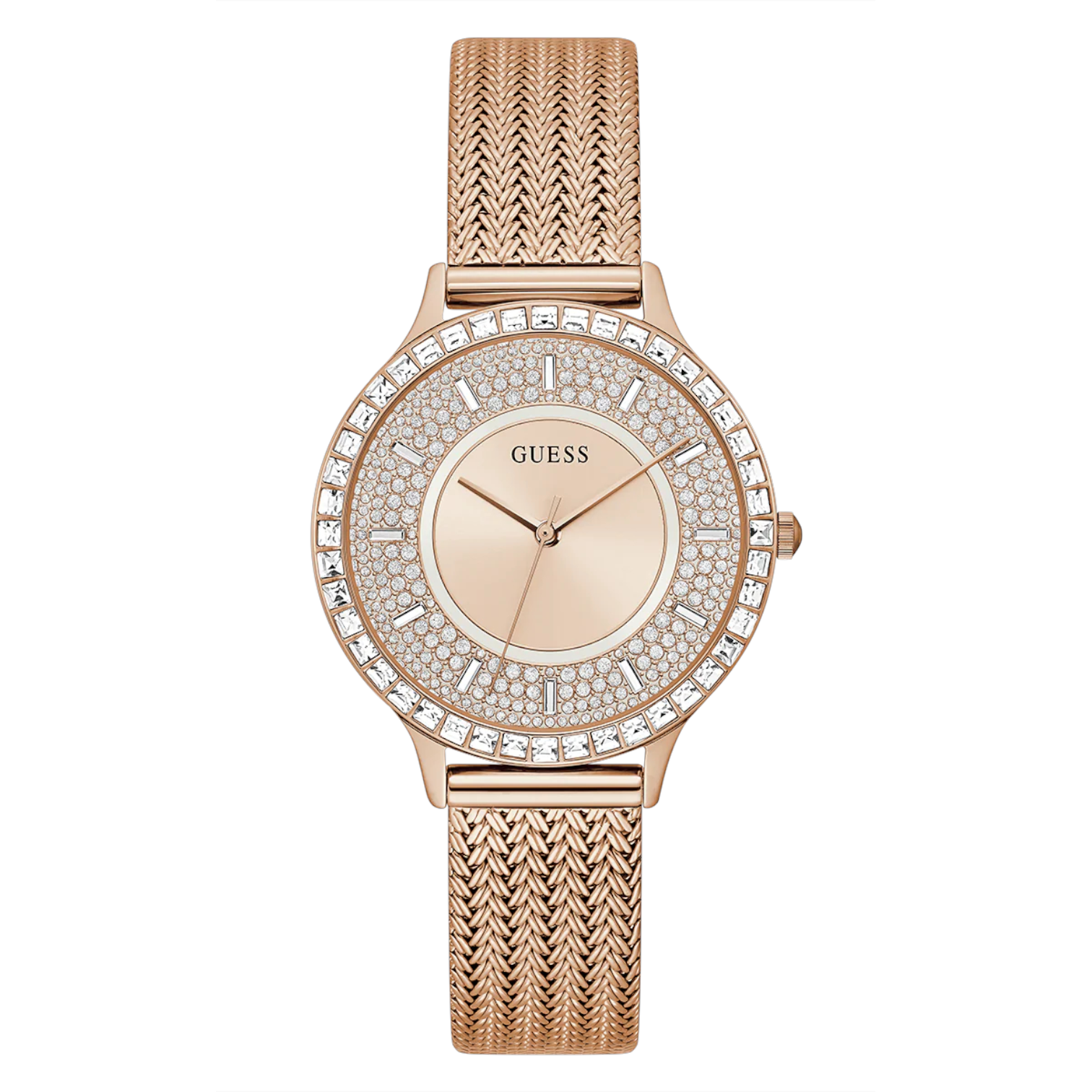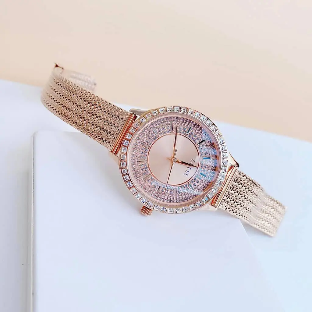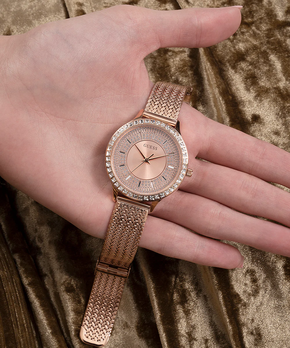 ساعة جيس للنساء اصلية موديل (كونفيتي) Confetti W0774L3 بلون وردي ونحاسي واستيك معدن بلون نحاسي