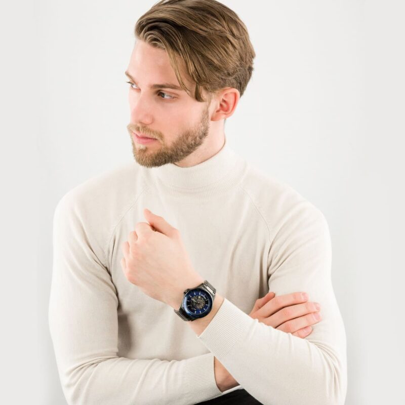 ساعة تومي هيلفيغر رجالي أصلية موديل (ميسون) Mason 1791788 بلون ازرق و استيك معدن بلون فضي