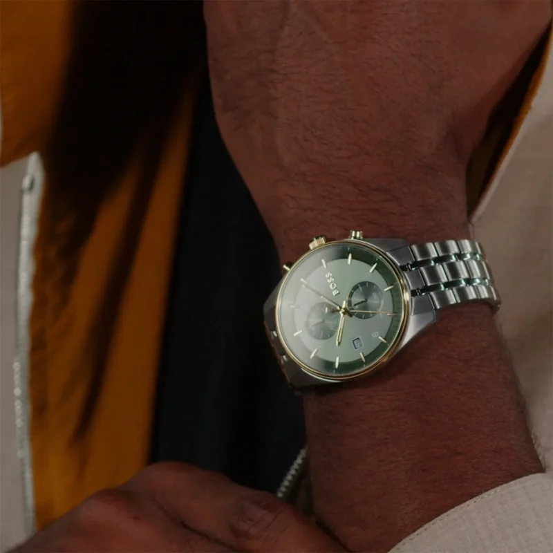 ساعة هوجو بوس Hugo Boss أصليه للرجال موديل 1514195 لون اخضر و استيك معدن لون فضي.