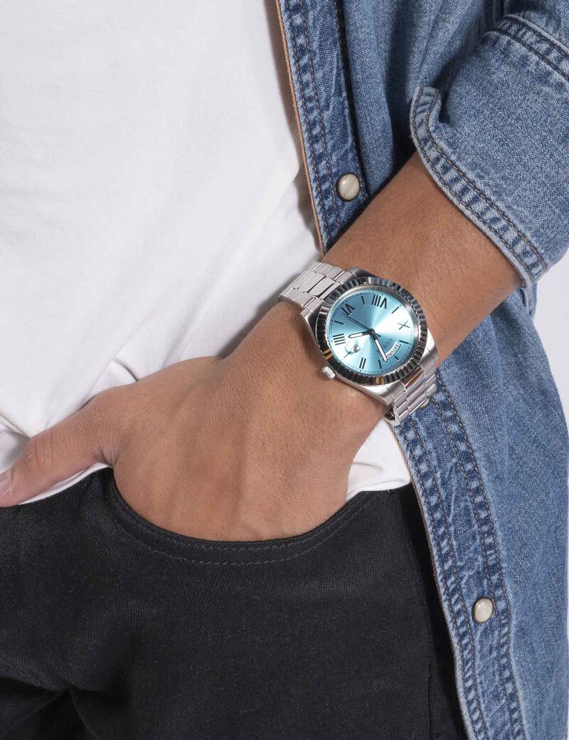 ساعة فوسيل للرجال اصلية موديل (جرانت ) Grant FS4990 بلون ازرق واستيك جلد بلون اسود