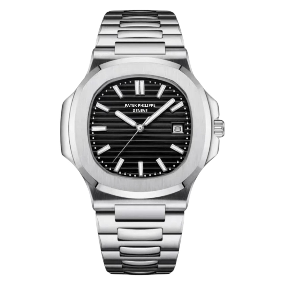 ساعه باتيك فيليب ناوتيلاس ميرور أوريجنال للرجال موديل (PATEK PHILIPPE 5811/1G – NAUTILUS) بلون اسود واوستيك ستنلس ستيل لون فضي