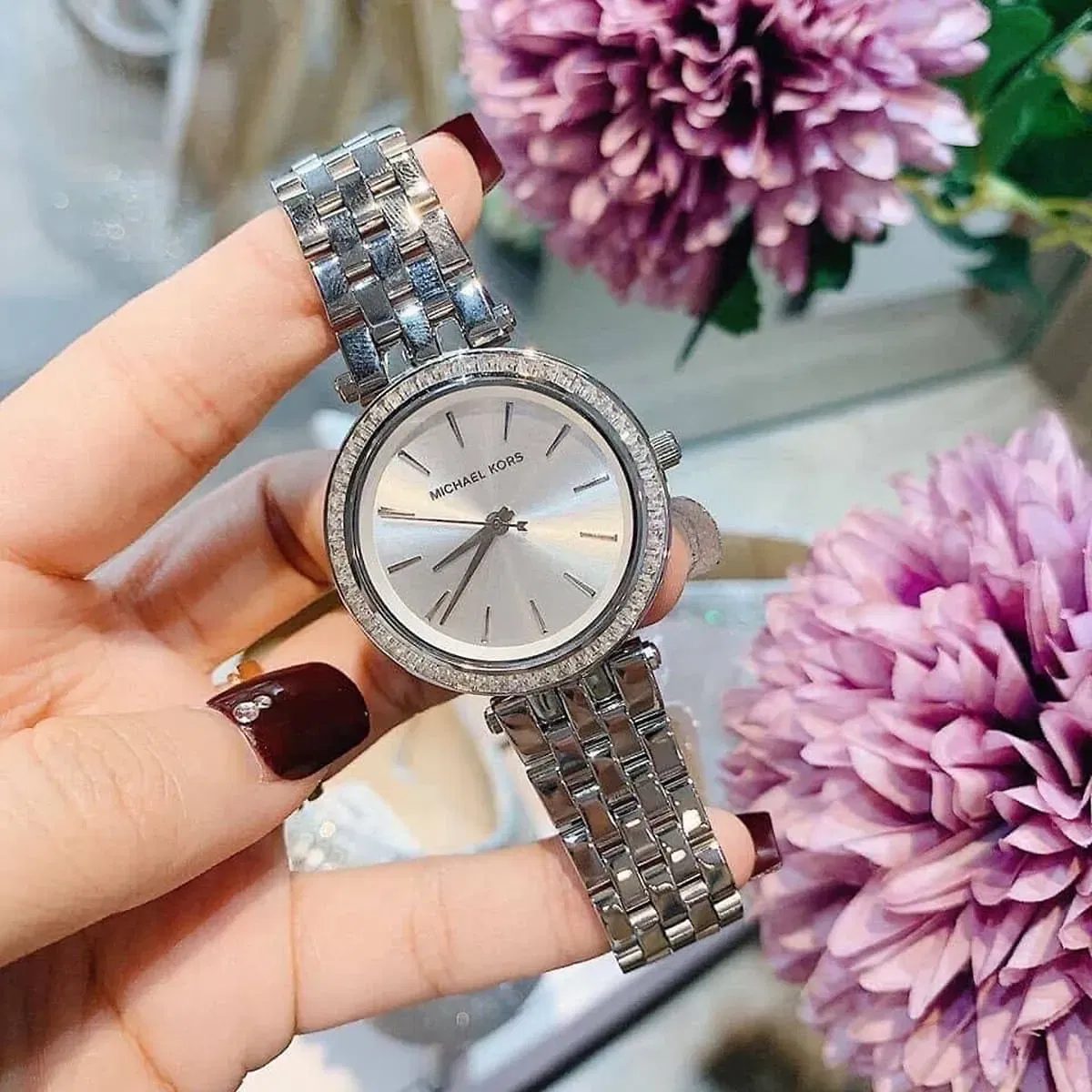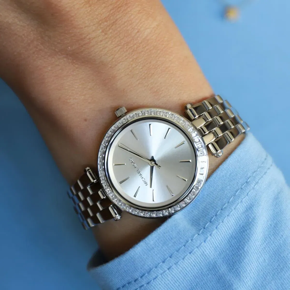 ساعة مايكل كورس حريمي أصلية موديل (دارسي) Darci MK3215 بلون فضي و استيك معدن بلون فضي و ذهبي
