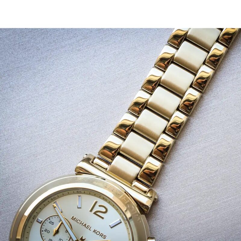 ساعة مايكل كورس حريمي أصلية موديل (ليكسينغتون) Lexington MK5955 بلون ابيض و استيك معدن بلون فضي و ذهبي