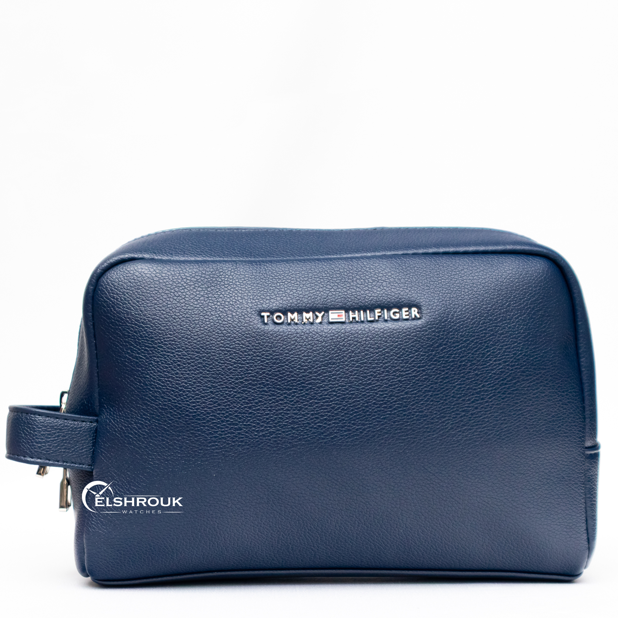 شنطة كروس تومي هيلفيغير رجالي أنيقة وعملية بلون كحلي وشريط أيقوني، سحاب متين وجيب داخلي، حزام قابل للتعديل، مثالية للهاتف والمحفظة وإطلالاتك اليومية.