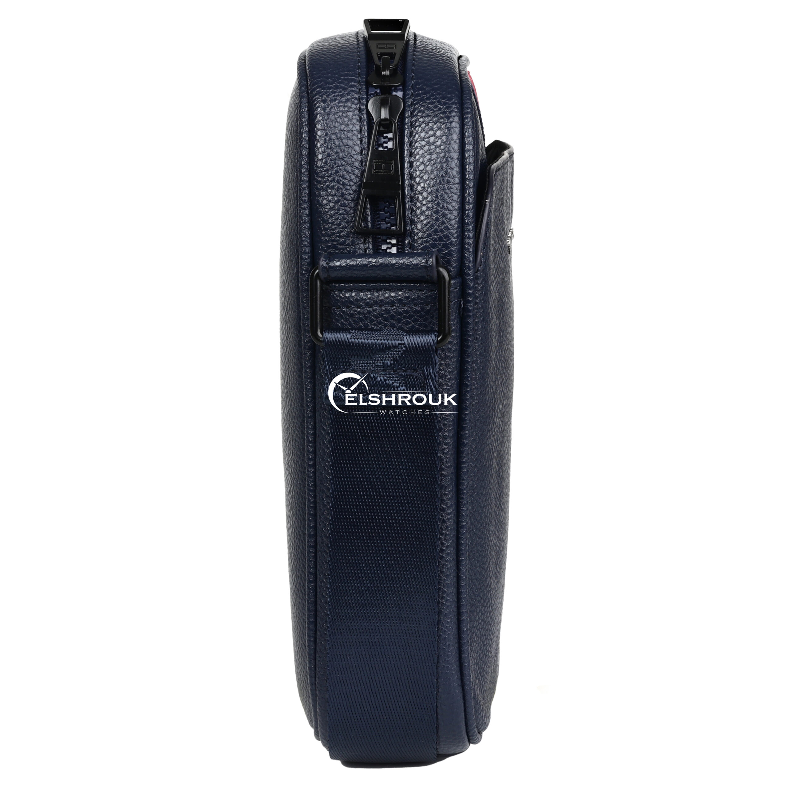 شنطة كروس لاكوست رجالي ازرق بتصميم مربعات أنيق، حزام قابل للتعديل، سحّابات معدنية متعددة الجيوب لتنظيم مثالي، متينة وخفيفة تناسب العمل والمشاوير اليومية