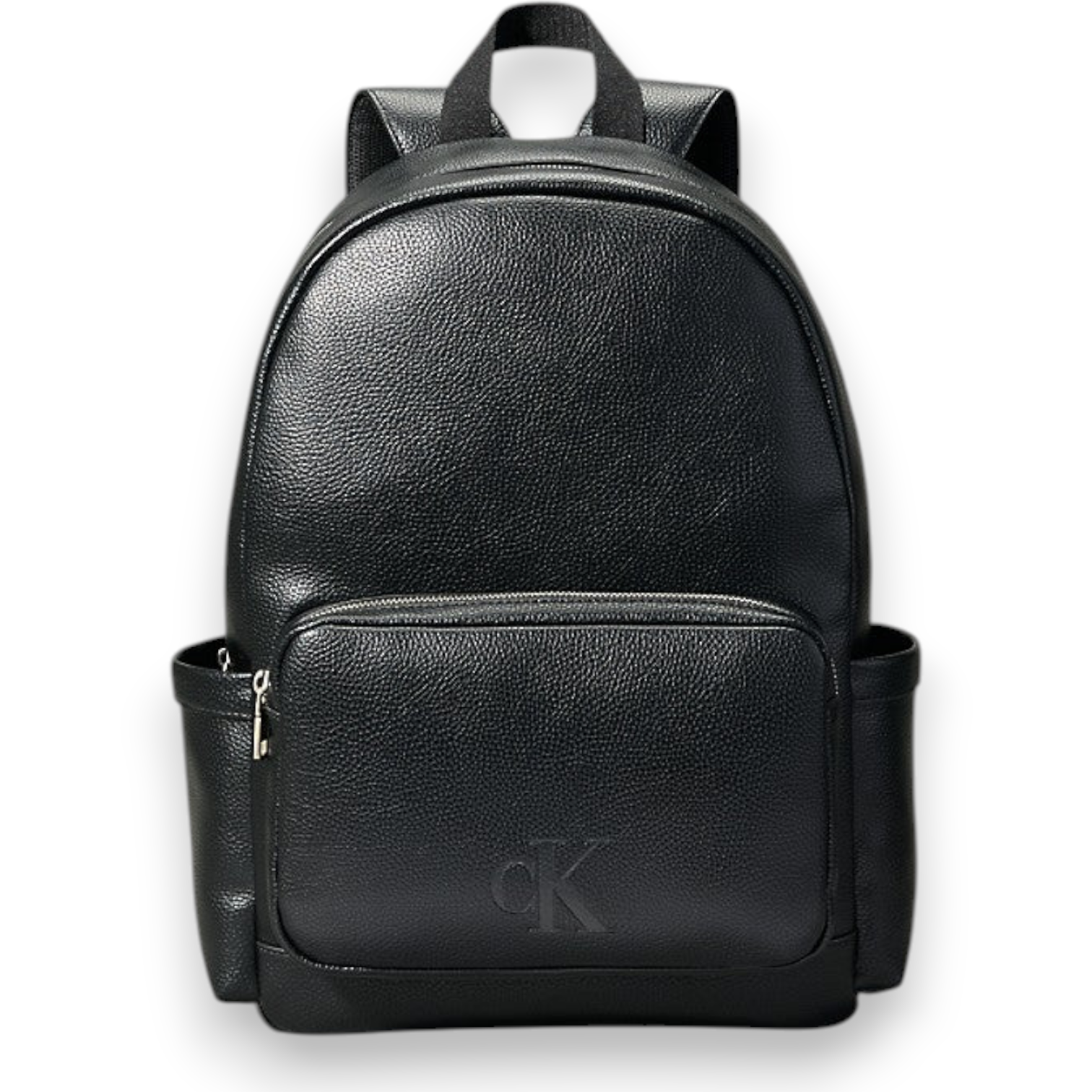 شنطة ظهر جلد طبيعي كالفن كلاين أنيقة وعملية بسحاب معدني لامع وجيوب منظمة، لون أسود فاخر يناسب العمل والسفر ويمنح إطلالة راقية يومية.