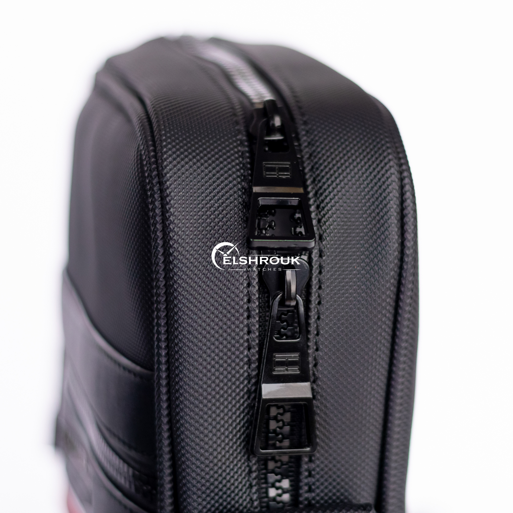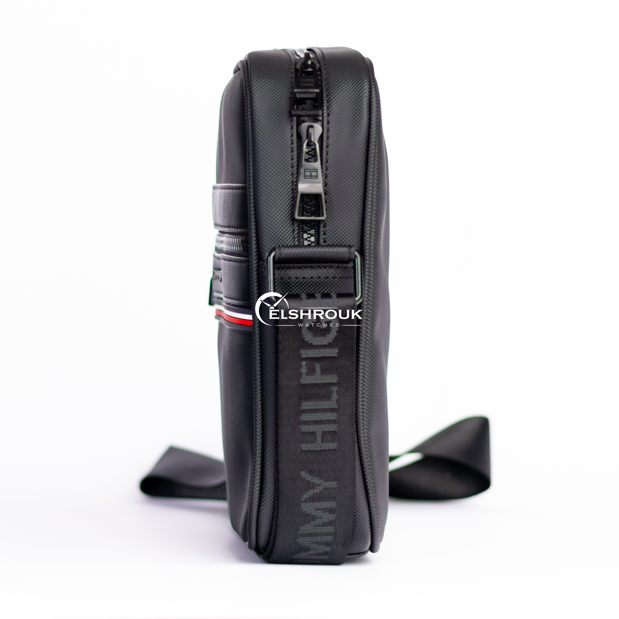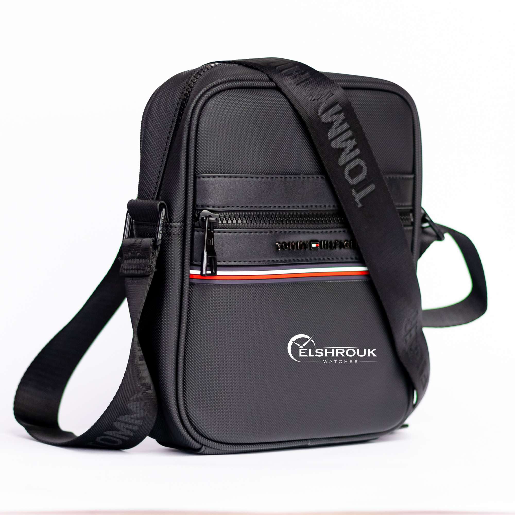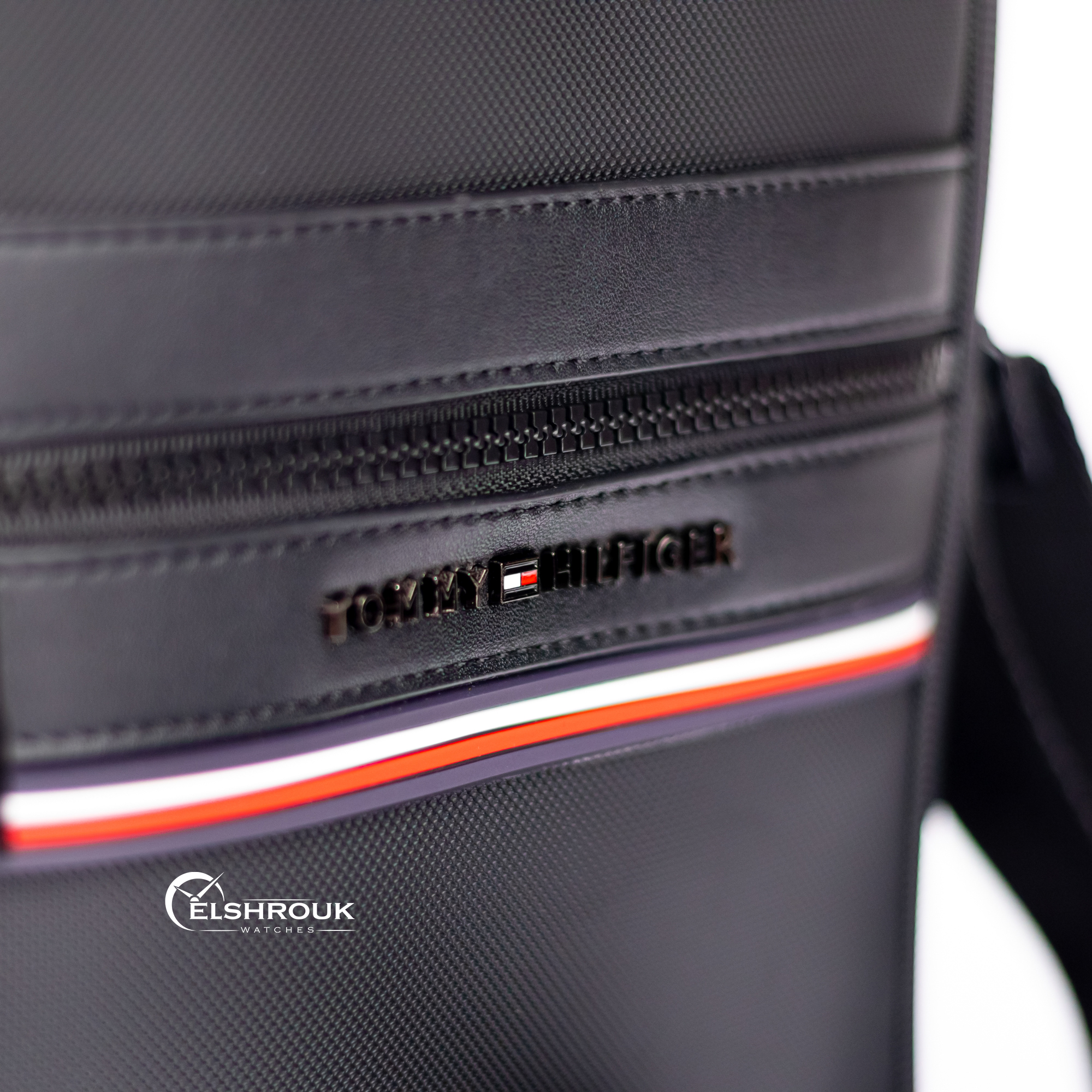 حقيبة كتف رجالية أنيقة بتوقيع Tommy Hilfiger تجمع بين العملية والفخامة في تصميم واحد مدمج. تأتي باللون الرمادي الداكن ذو ملمس حبيبي يمنحها قوة تحمل ومقاومة للخدش، مع خطوط نظيفة وزوايا مستديرة تعكس روح العصرية. الواجهة الأمامية تتزين بشريط ثلاثي الألوان الأحمر والأبيض والرمادي الفاتح يمر أفقياً ليمنح الحقيبة لمسة رياضية راقية، تعلوه علامة TOMMY HILFIGER المعدنية الدقيقة التي تبرز جودة التفاصيل. سحاب الجيب الأمامي أسود لامع مع سحّابة معدنية منقوشة بحرفي TH تضيف إحساساً بالمتانة والترف في آن واحد.