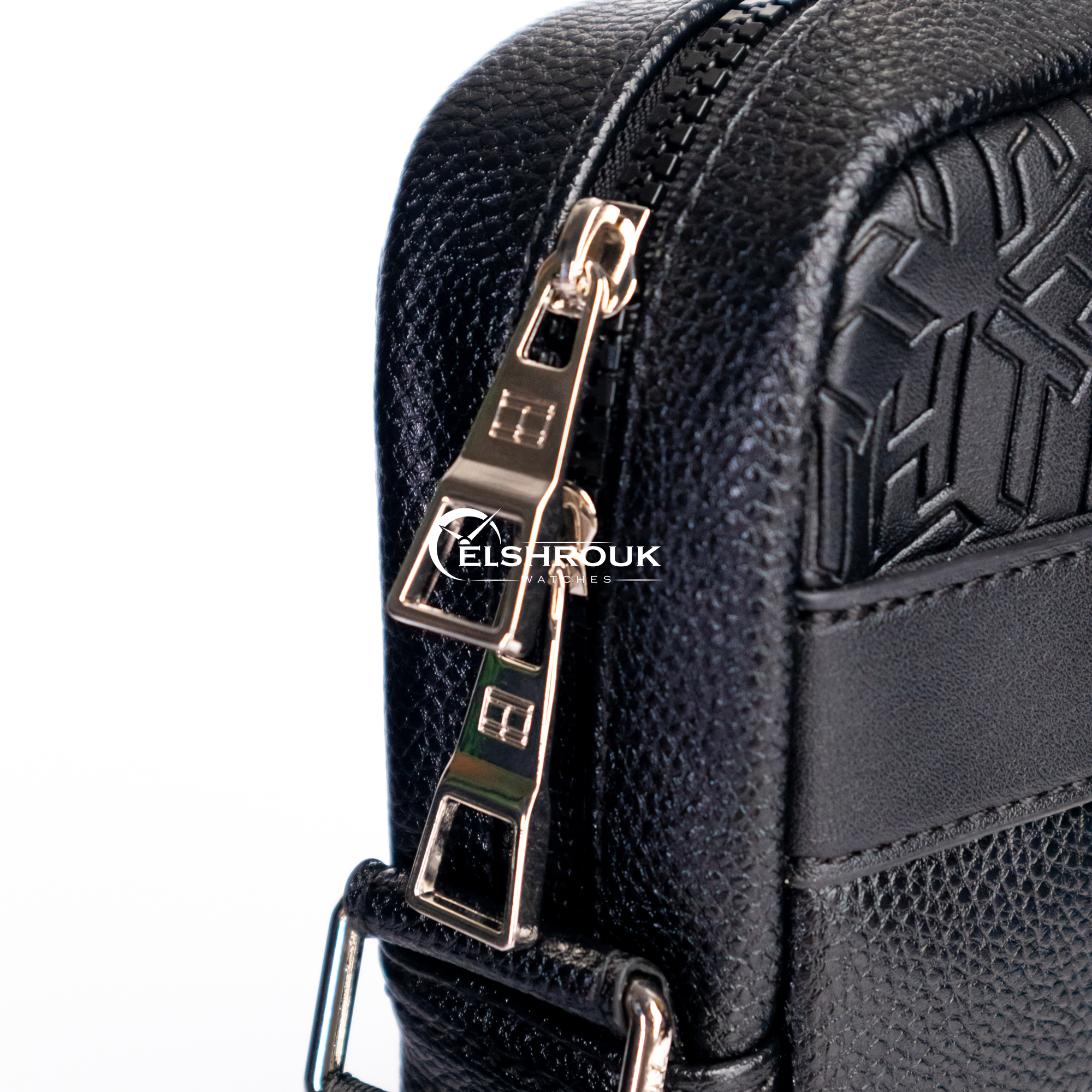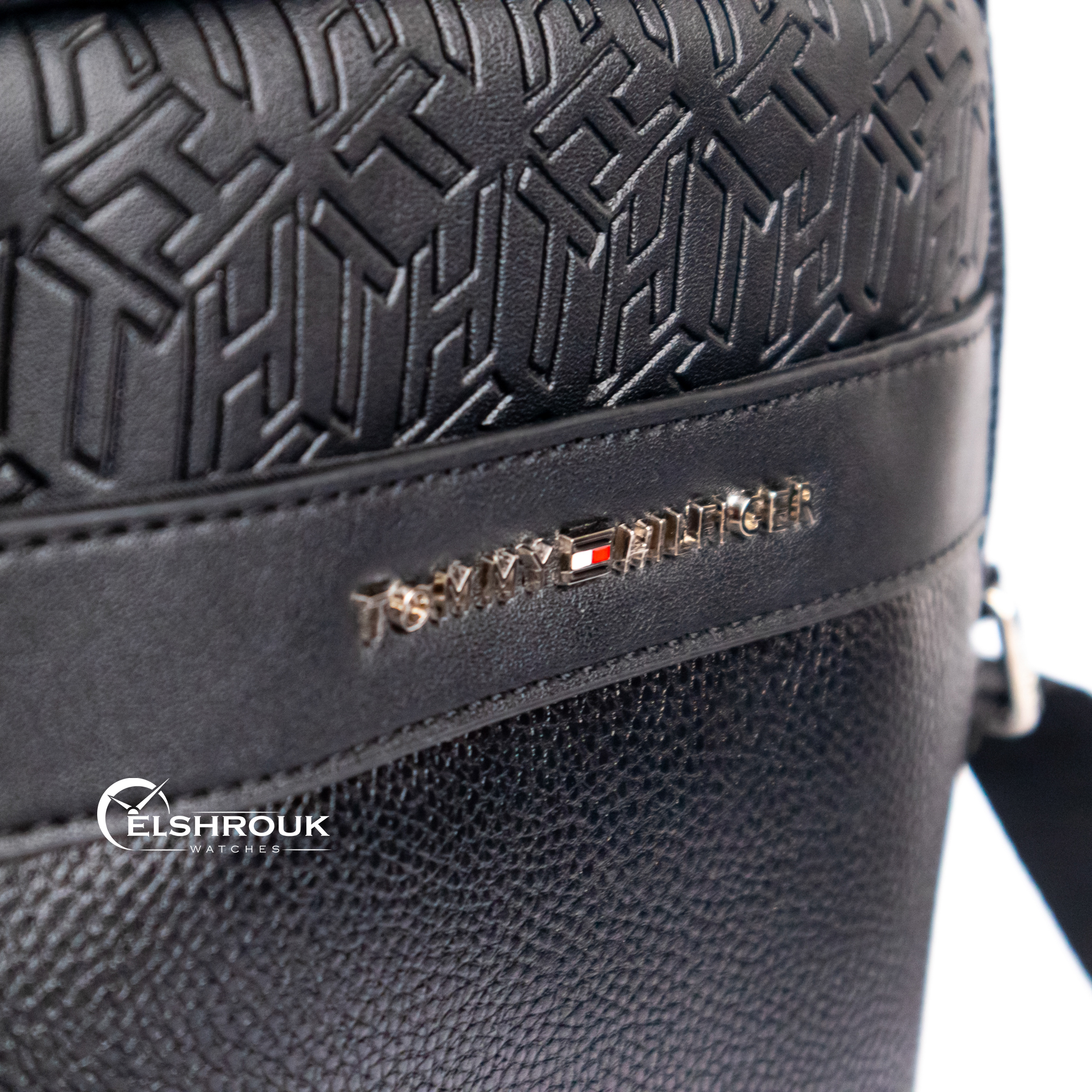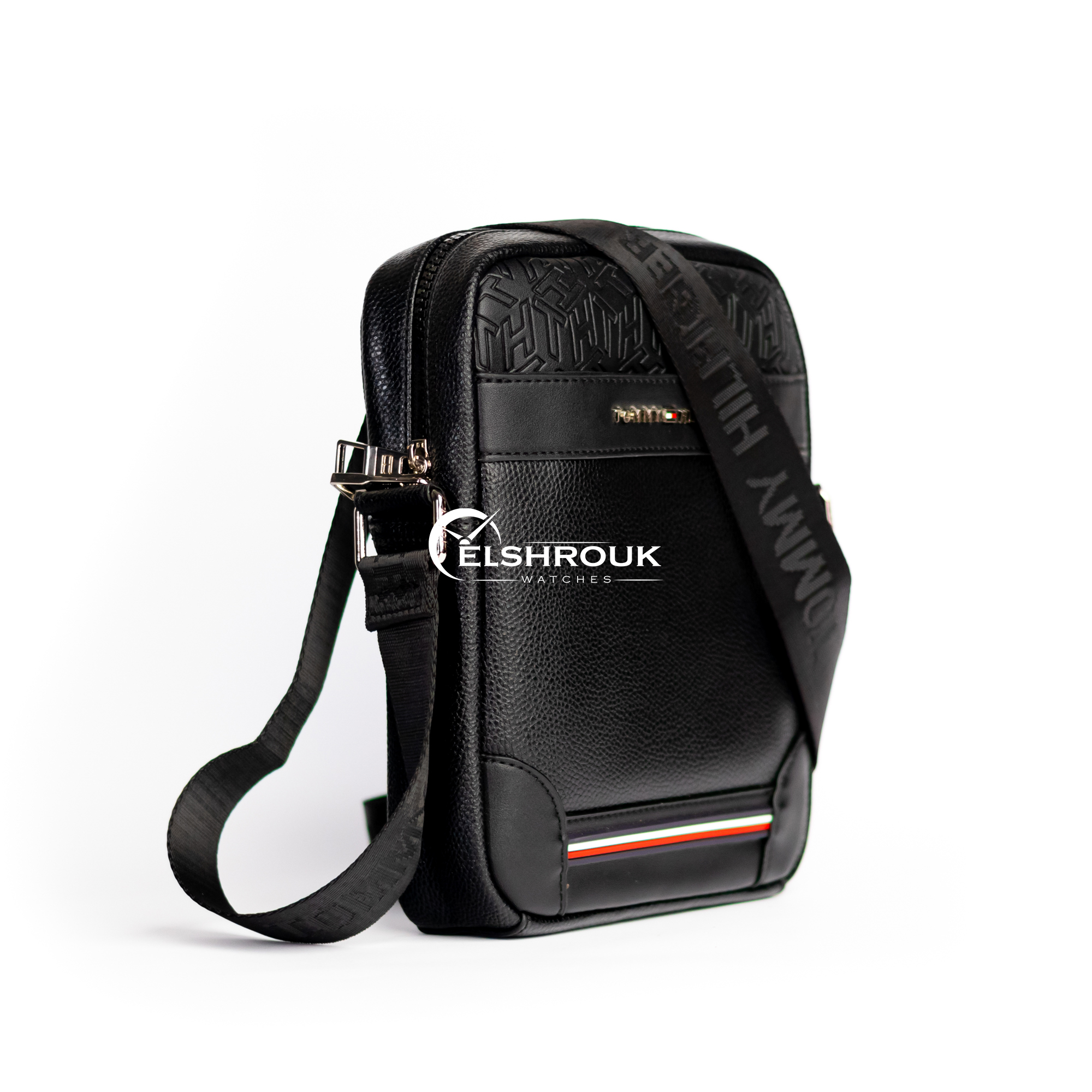 شنطة كروس تومي هيلفيغر رجالي تجمع بين الفخامة العصرية والعملية اليومية في تصميم واحد مدهش. الحقيبة تأتي بلون أسود أنيق يمنحها حضوراً قوياً فوق أي إطلالة، مع خامة جلد صناعي محبب بملمس فاخر يضفي عمقاً بصرياً ولمعاناً راقياً. الواجهة مزدانة بشريط ثلاثي بالألوان الكلاسيكية الأحمر والأبيض والأزرق يمنح لمسة توقيع مميزة، بينما يعلوها نقش TH المتكرر ببارزة ناعمة يعكس الضوء برقي ويبرز الهوية العصرية للعلامة. في المنتصف يظهر شعار معدني صغير مصقول بعناية يضيف تفصيلاً لامعاً دون مبالغة.