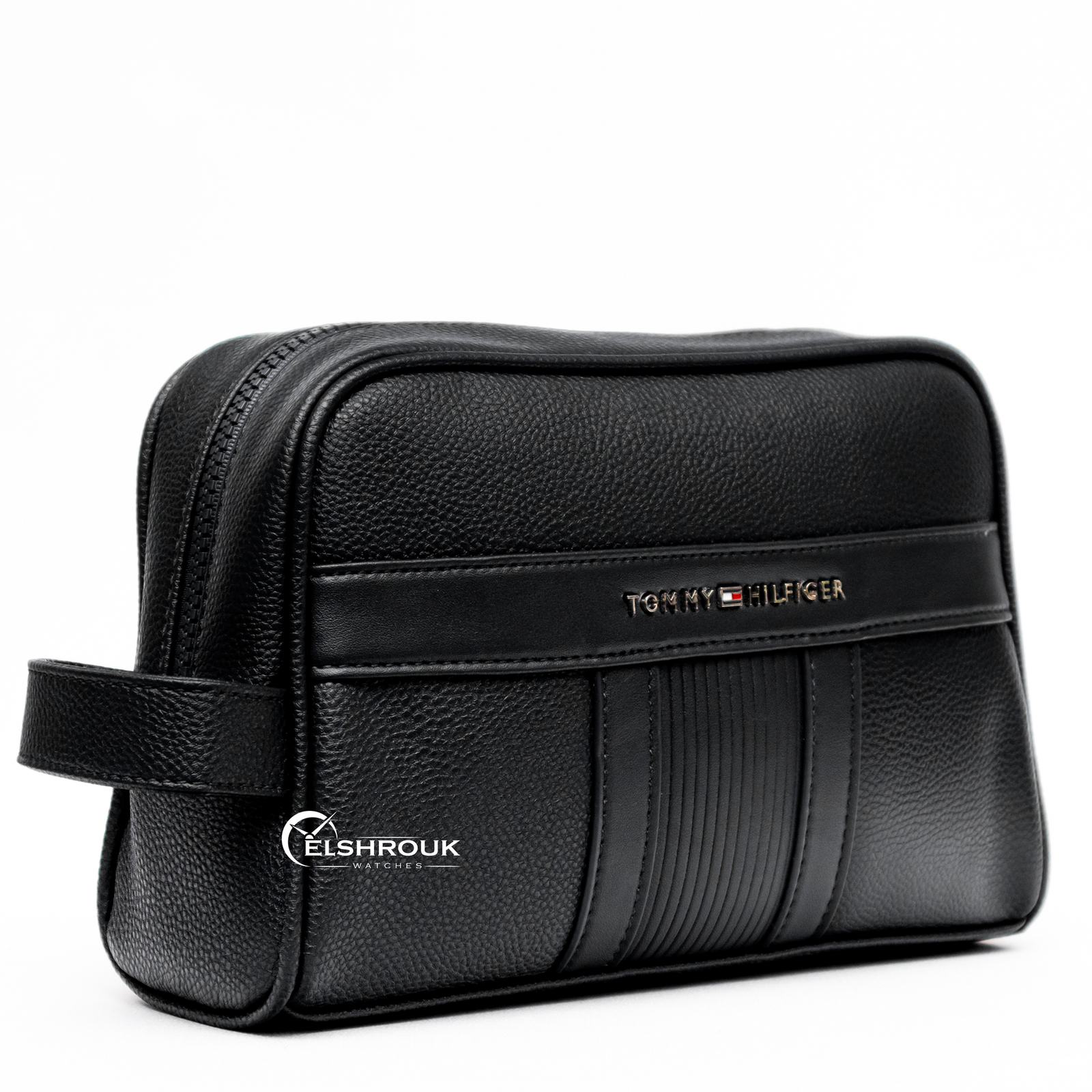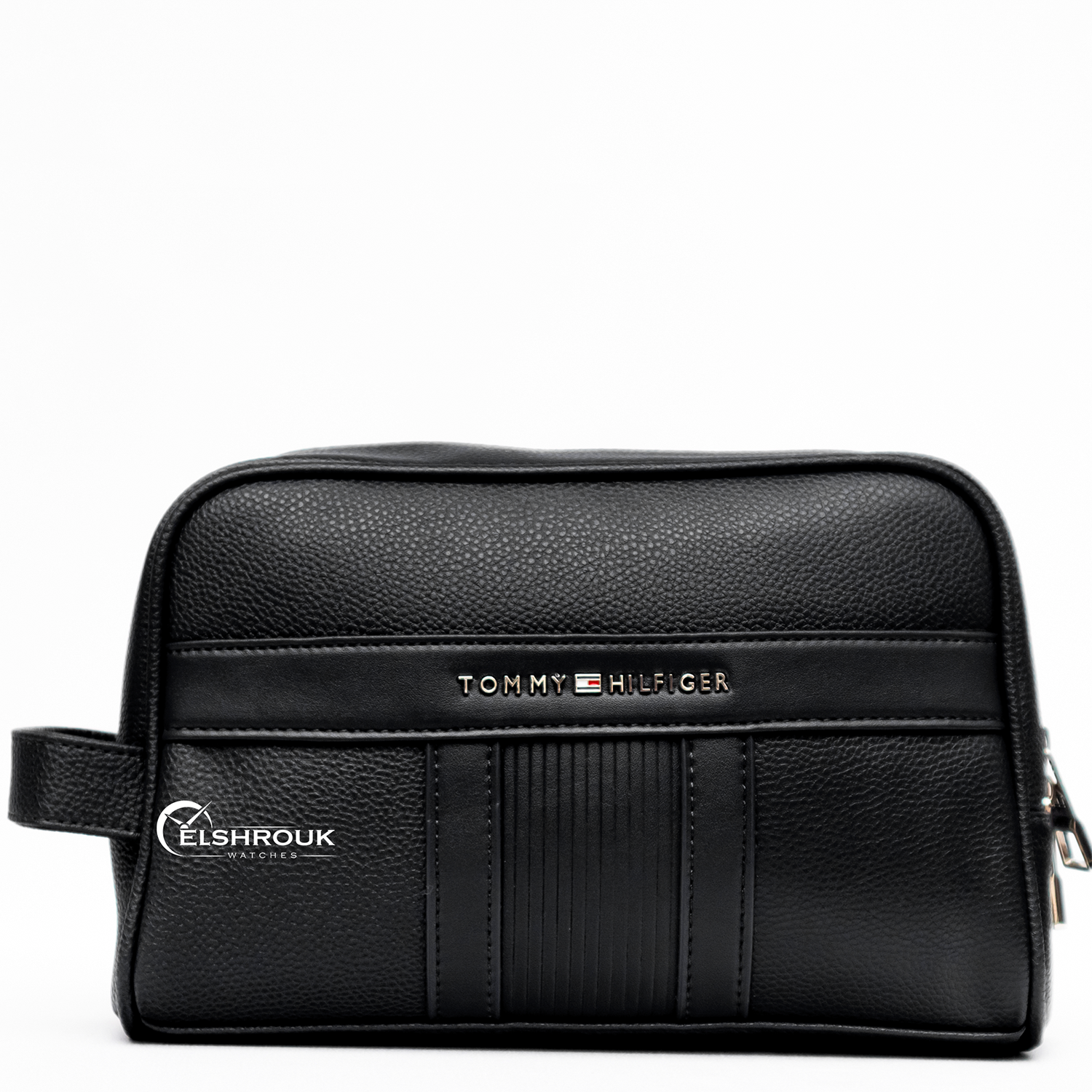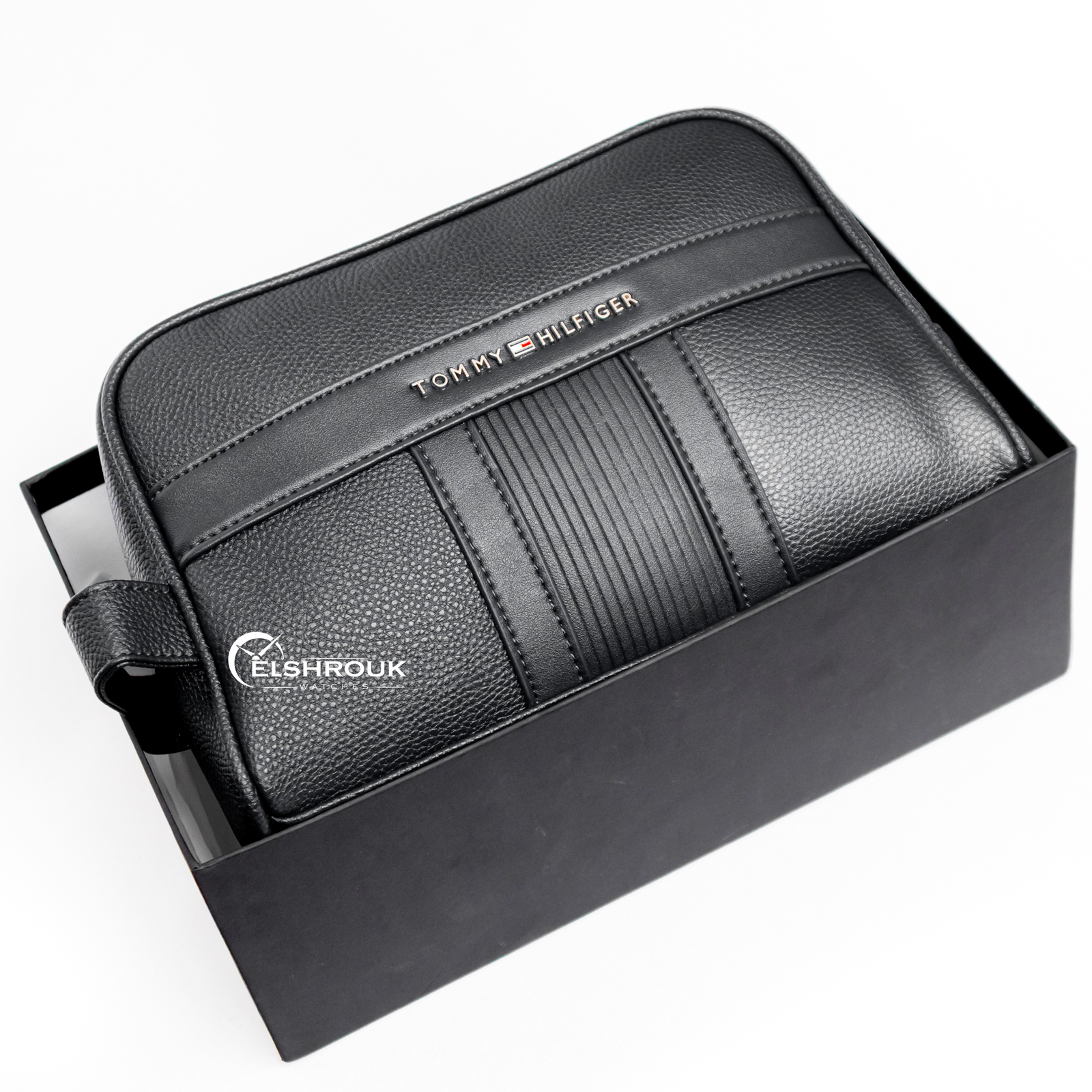 شنطة كروس ووتر بروف ماركة تومي هيلفيغر أنيقة بجلد محبب، شعار معدني، شريط ألوان مميز، حزام قابل للتعديل وجيب داخلي بسحاب؛ عملية وأنيقة لكل خروجاتك.