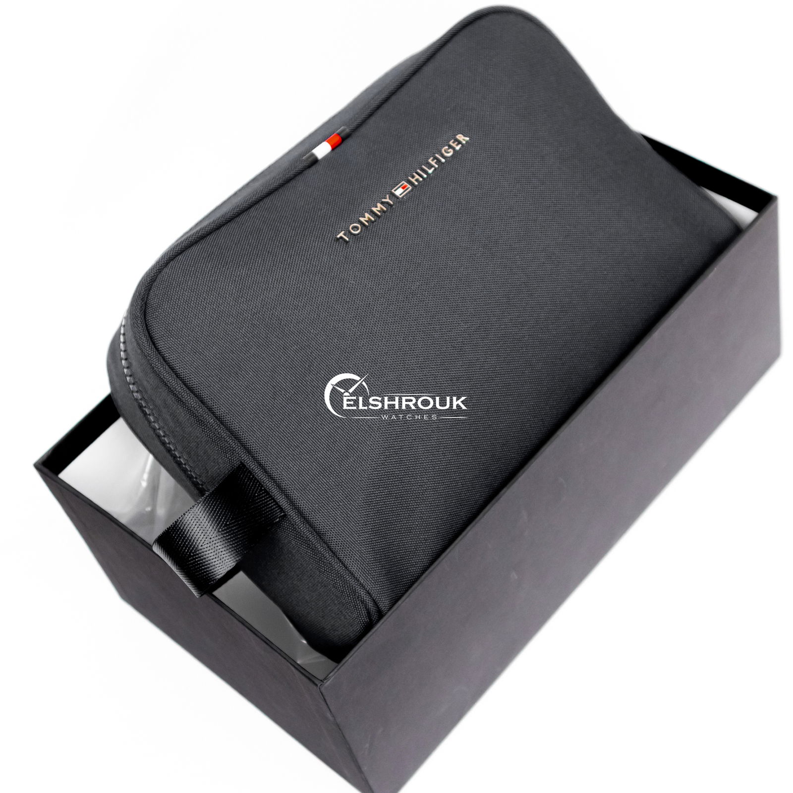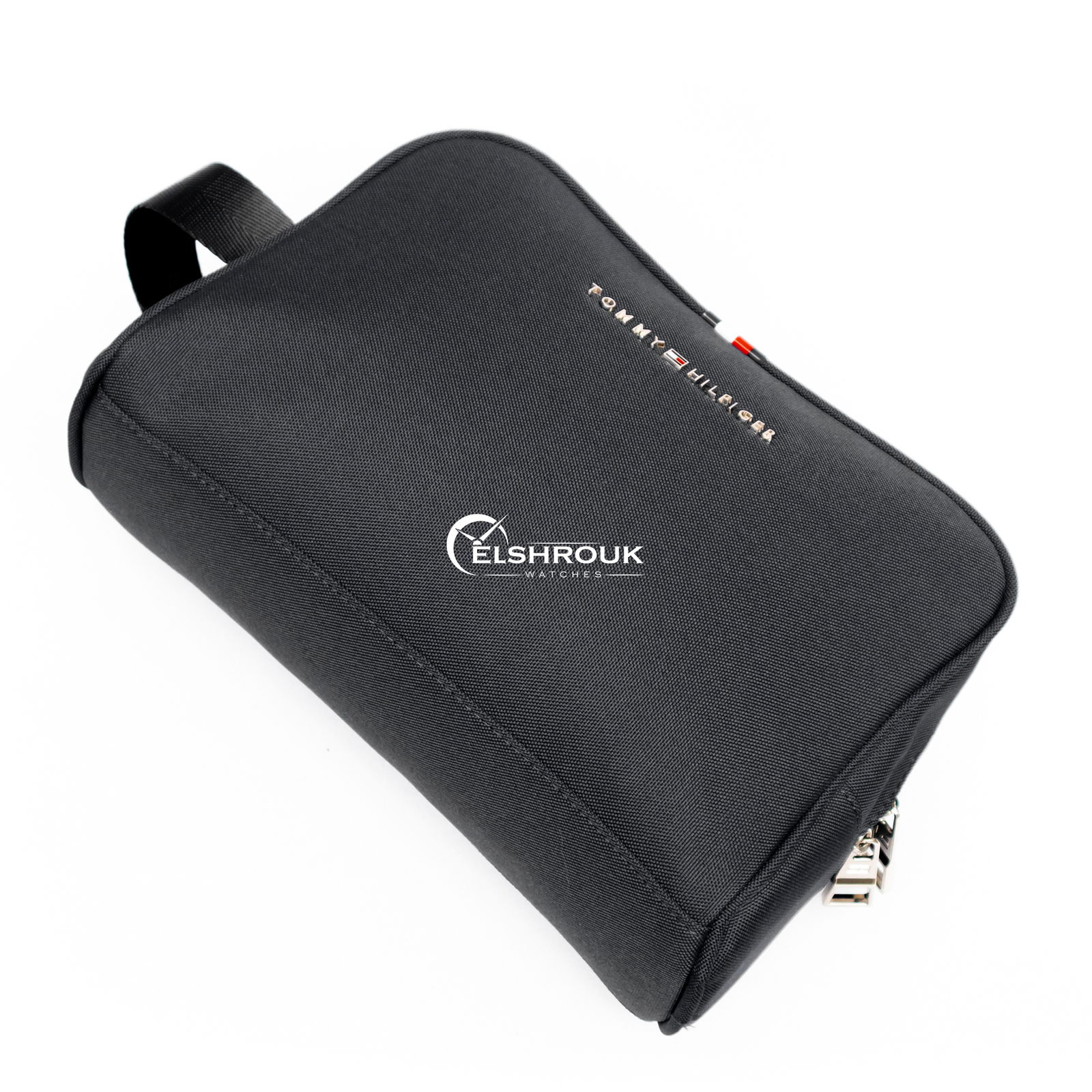 شنطة كروس ووتر بروف ماركة تومي هيلفيغر أنيقة بجلد محبب، شعار معدني، شريط ألوان مميز، حزام قابل للتعديل وجيب داخلي بسحاب؛ عملية وأنيقة لكل خروجاتك.