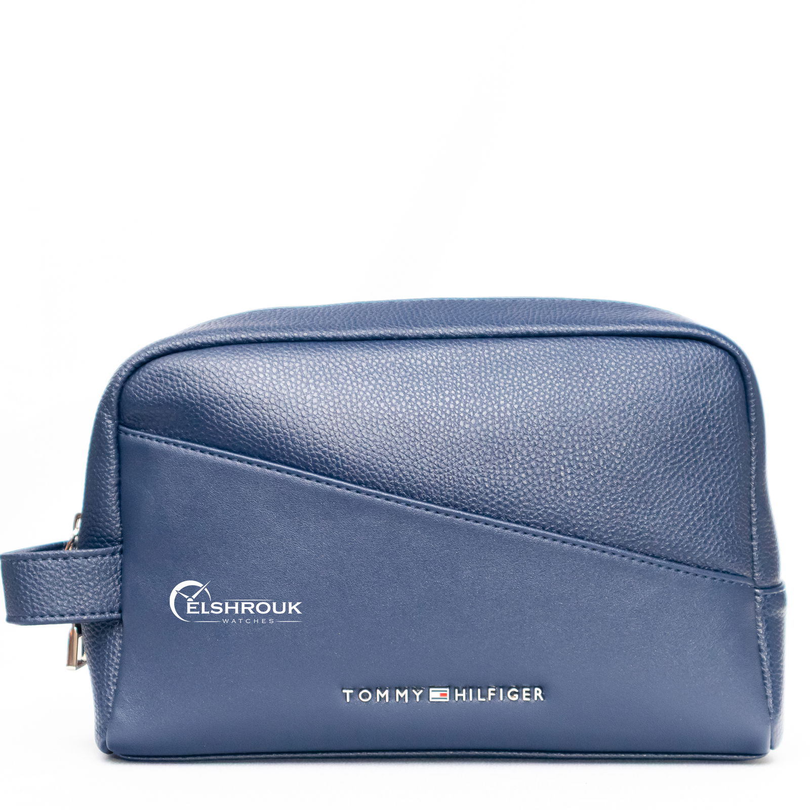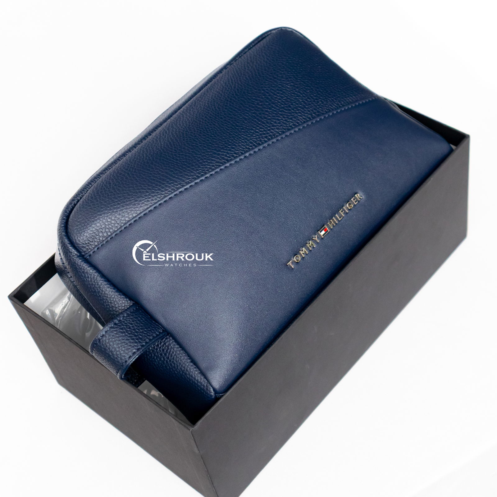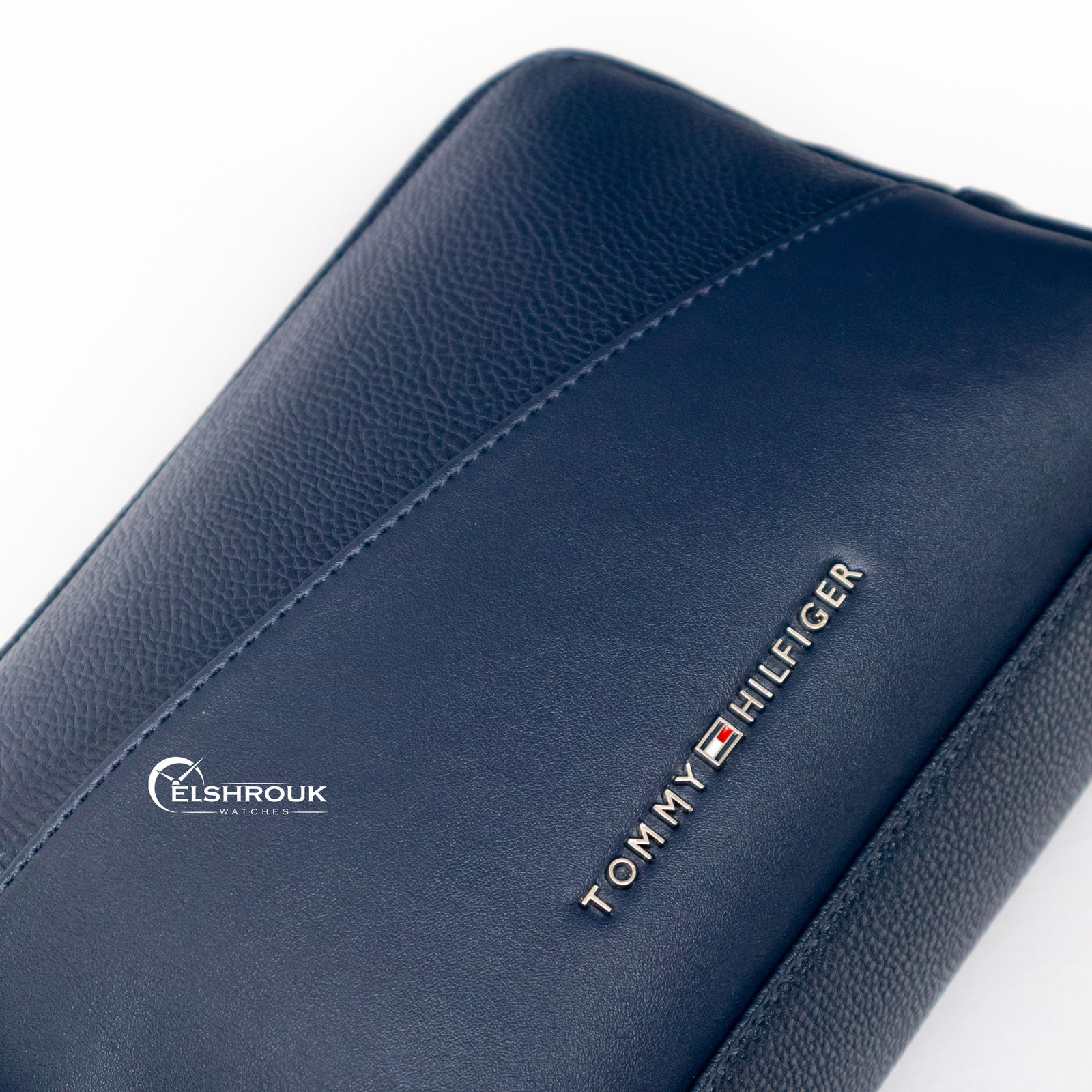 شنطة كروس تومي هيلفيغير رجالي أنيقة وعملية بلون كحلي وشريط أيقوني، سحاب متين وجيب داخلي، حزام قابل للتعديل، مثالية للهاتف والمحفظة وإطلالاتك اليومية.