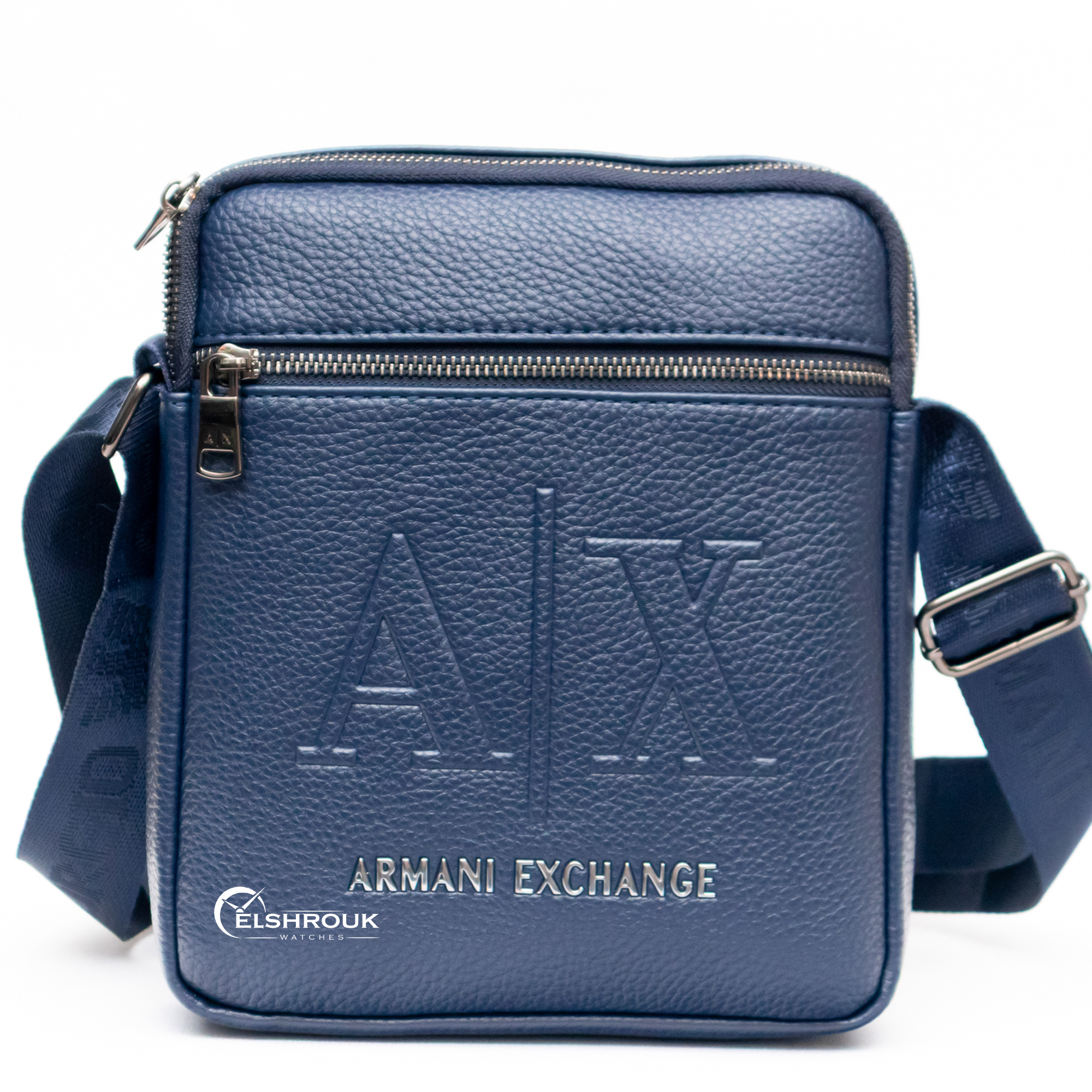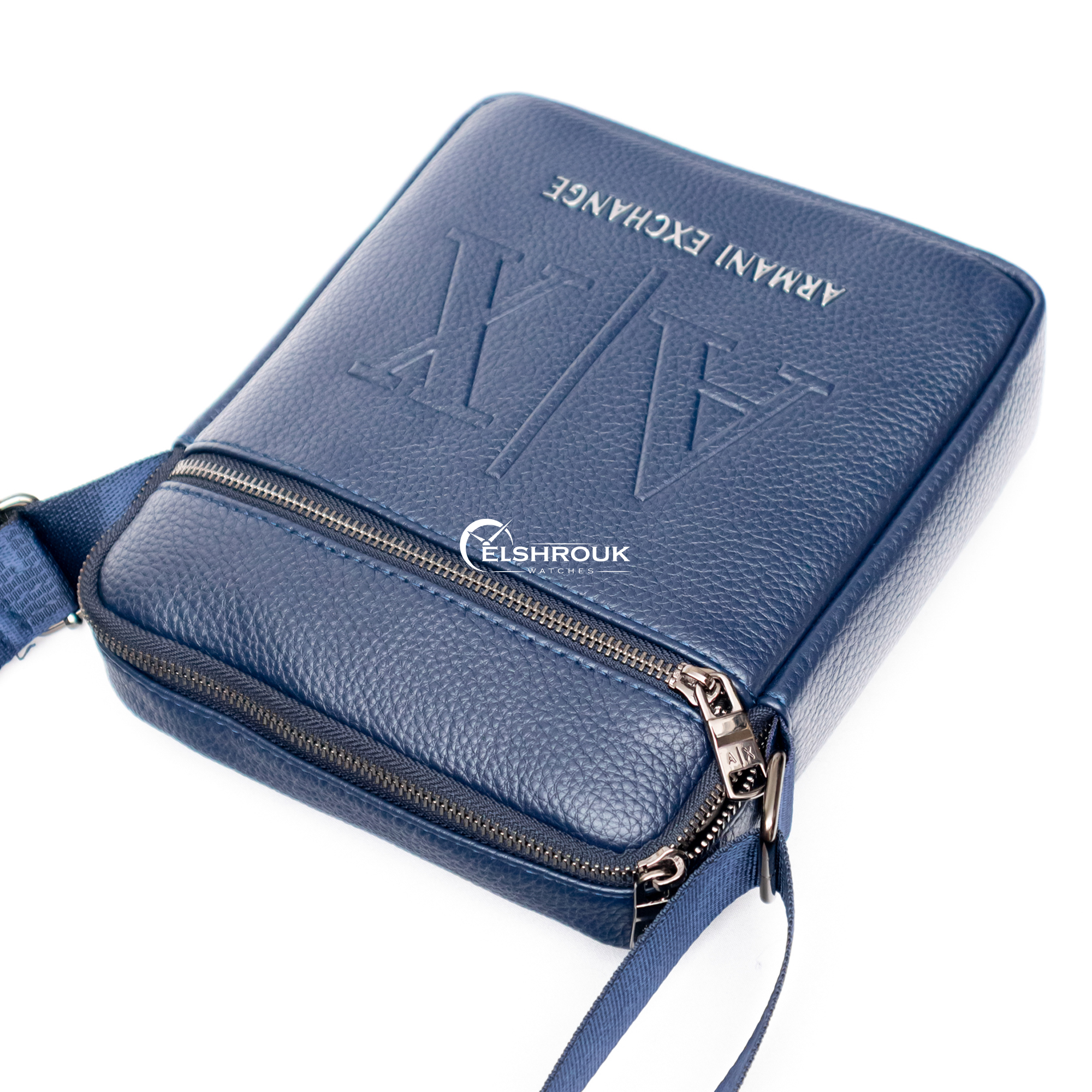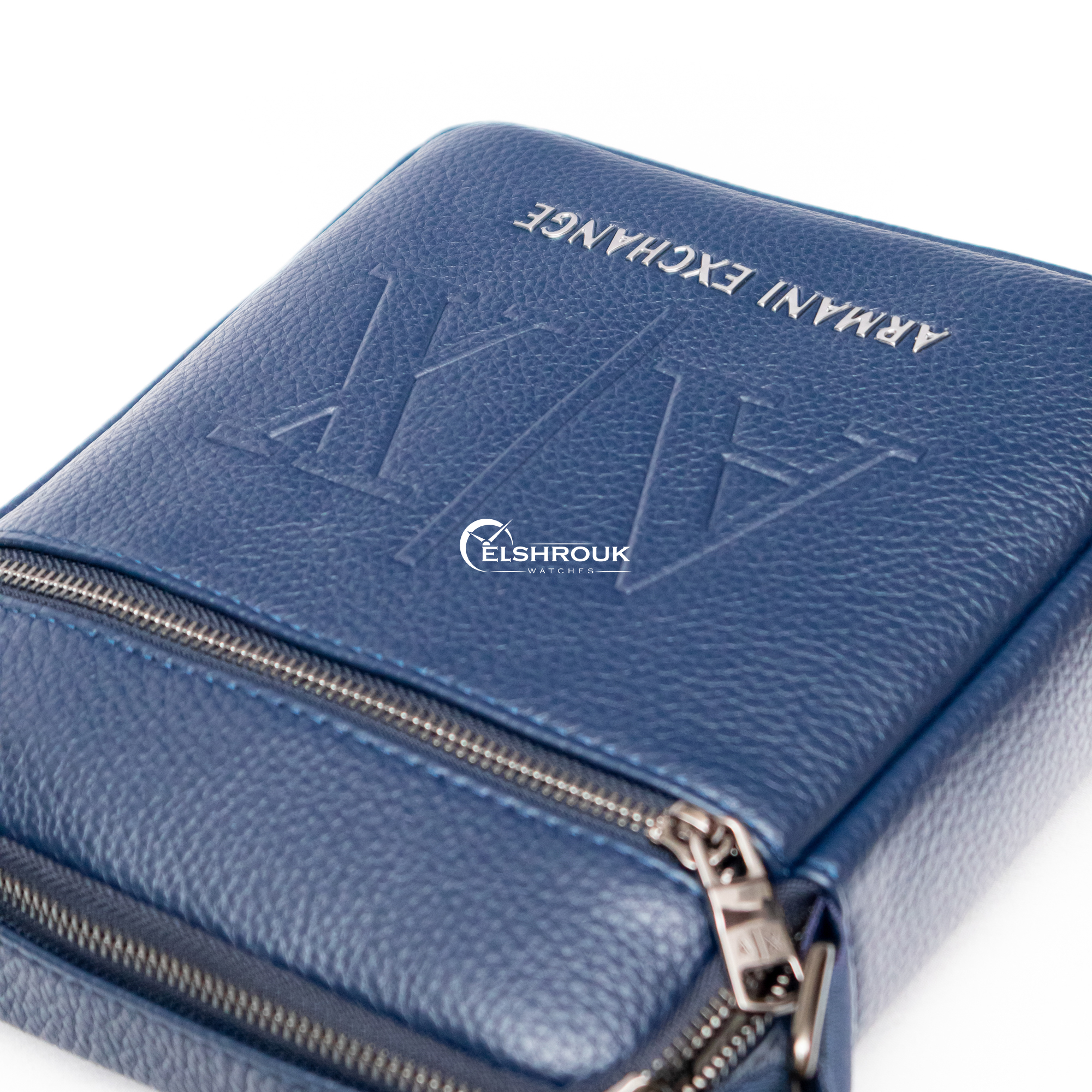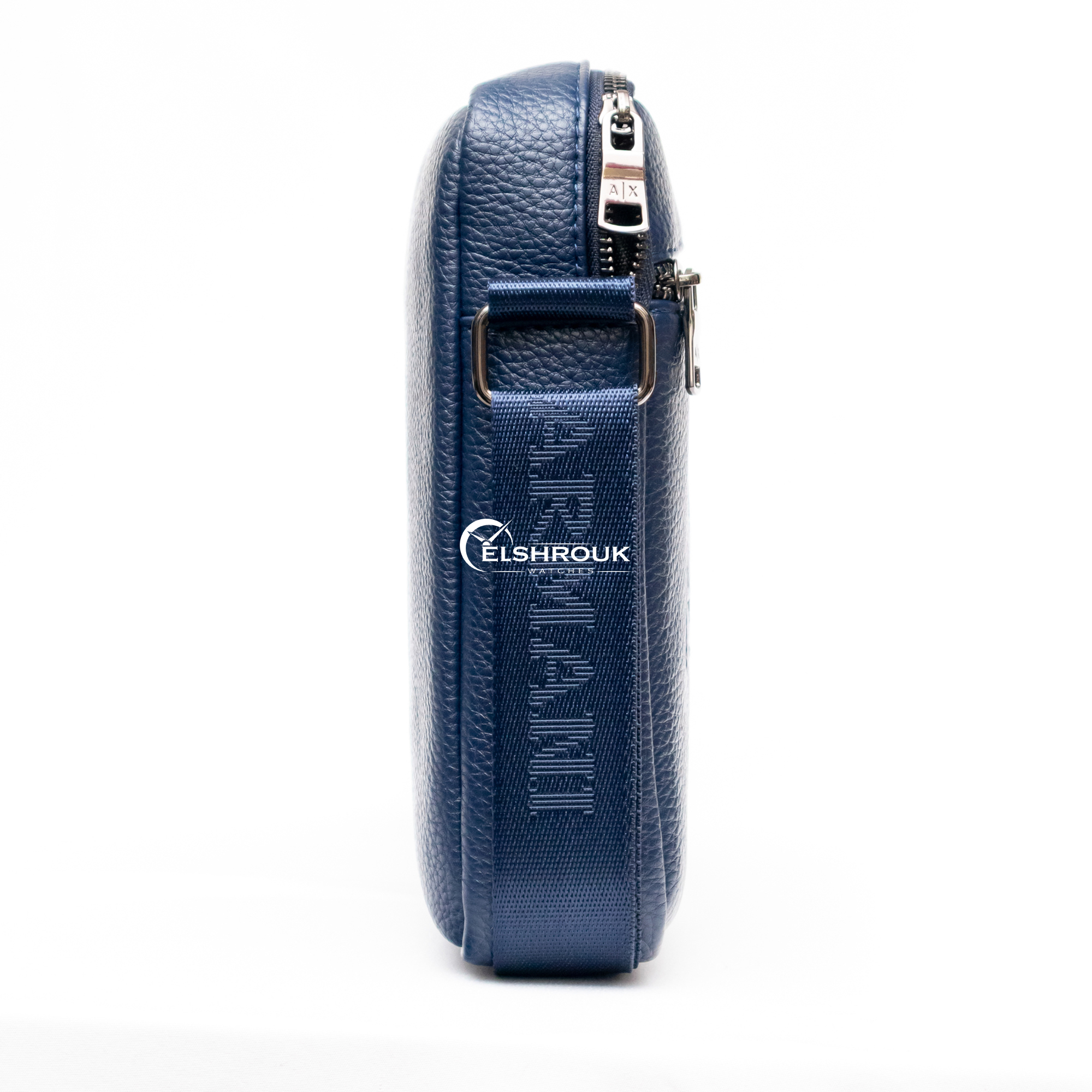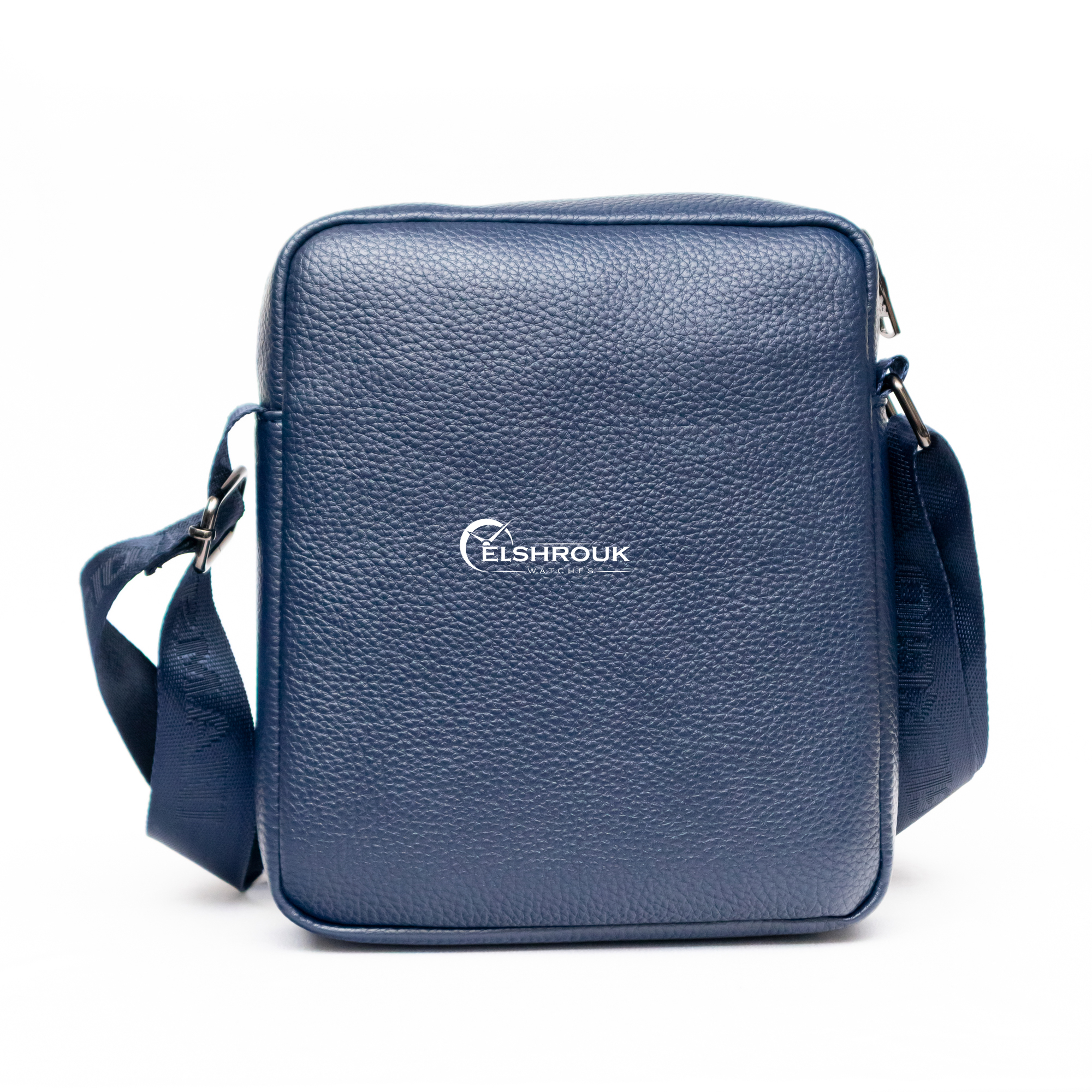 شنطة كروس تومي هيلفيغر بلون ازرق بإطلالة عصرية وخامات متينة، تصميم مستطيل بحواف ناعمة، سحّابات لامعة وحزام قابل للتعديل، عملية وأنيقة لكل يوم.