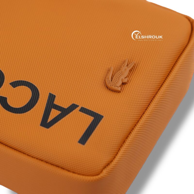 اختبر أناقة عملية تجمع بين البساطة العصرية وروح العلامة الأيقونية مع هذه الشنطة الكروس من لاكوست. تصميم مستطيل متوازن الحواف يمنحها حضوراً ذكورياً أنيقاً، فيما يبرز على الواجهة نقش حروفي هندسي بتباين أبيض واضح يضيف لمسة جرافيكية لافتة. شعار التمساح المعدني يتوسط الجزء العلوي ليؤكد الأصالة، وتُحيط بالواجهة خياطة دقيقة مزدوجة تمنح الشنطة شخصية قوية وتفاصيل فاخرة. الواجهة الأمامية مزودة بجيب بسحّاب ثنائي لتسهيل الوصول إلى المتعلقات السريعة مثل الهاتف والمفاتيح، أما المقصورة الرئيسية فهي رحبة ومبطنة لحماية الأجهزة اللوحية والمستندات، مع تنظيم داخلي يحافظ على ترتيبك طوال اليوم. يوجد جيب خلفي بسحّاب خفي لزيادة الأمان في التنقل.