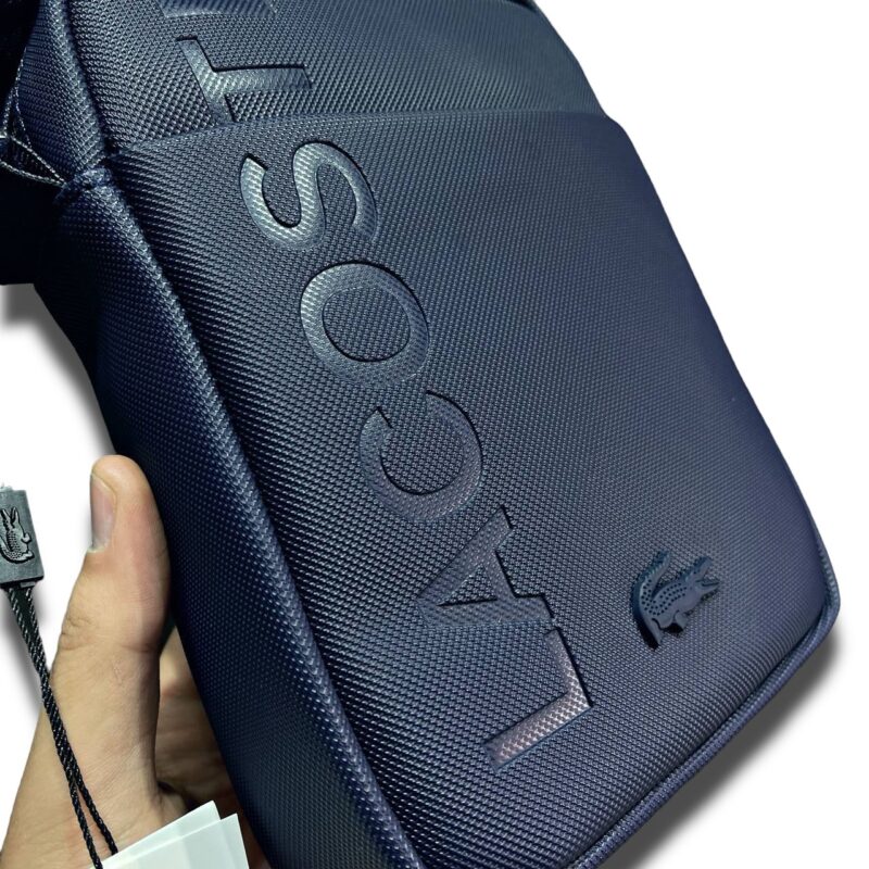 اختبر أناقة عصرية تجمع بين البساطة والفخامة مع هذه الحقيبة الكروس من لاكوست بلون أزرق داكن راقٍ يلفت الأنظار دون صخب. تصميم مربع بحواف ناعمة يمنحها حضورًا متوازنًا وسهل التناسق مع ملابسك اليومية أو إطلالات العمل. يبرز على الواجهة نقش LACOSTE البارز بأسلوب متدرج يمنح السطح لمسة ثلاثية الأبعاد جذابة، مع شعار التمساح الأيقوني بتفاصيل دقيقة تضيف توقيعًا فاخرًا يؤكد الأصل والجودة. خامتها المصنوعة من مادة متينة بملمس ميكرو محبّب تقاوم الخدوش وتتحمل الاستخدام اليومي، مع خياطات محكمة على الحواف تمنح عمرًا أطول وشكلًا ثابتًا لا يترهل.