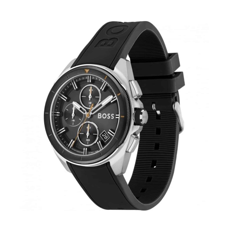 ساعة هوغو بوس للرجال اصلية موديل (فولان) Volane 1513953 بلون اسود واستيك رابر لون اسود
