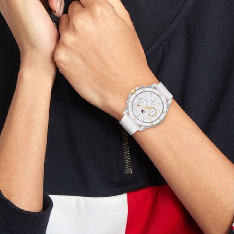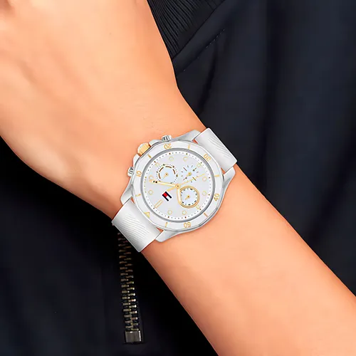 ساعة تومي هيلفيغر حريمي أصلية موديل (إيف) Eve 1782280 بلون ابيض و استيك مطاط بلون ابيض