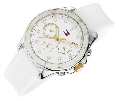 ساعة تومي هيلفيغر للنساء أصلية موديل 1782568 لون ابيض و استيك سيليكون مطاط لون ابيض.