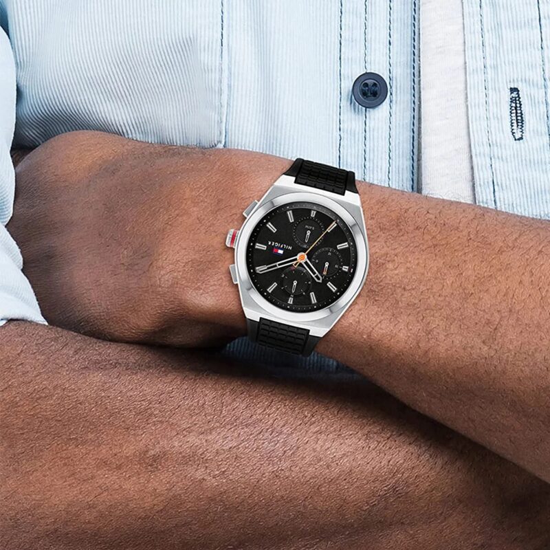 ساعة تومي هيلفيغر Tommy Hilfiger رجالي أصلية موديل (كونور) 1791898 Connor بلون اسود و استيك مطاط (سيليكون) بلون اسود
