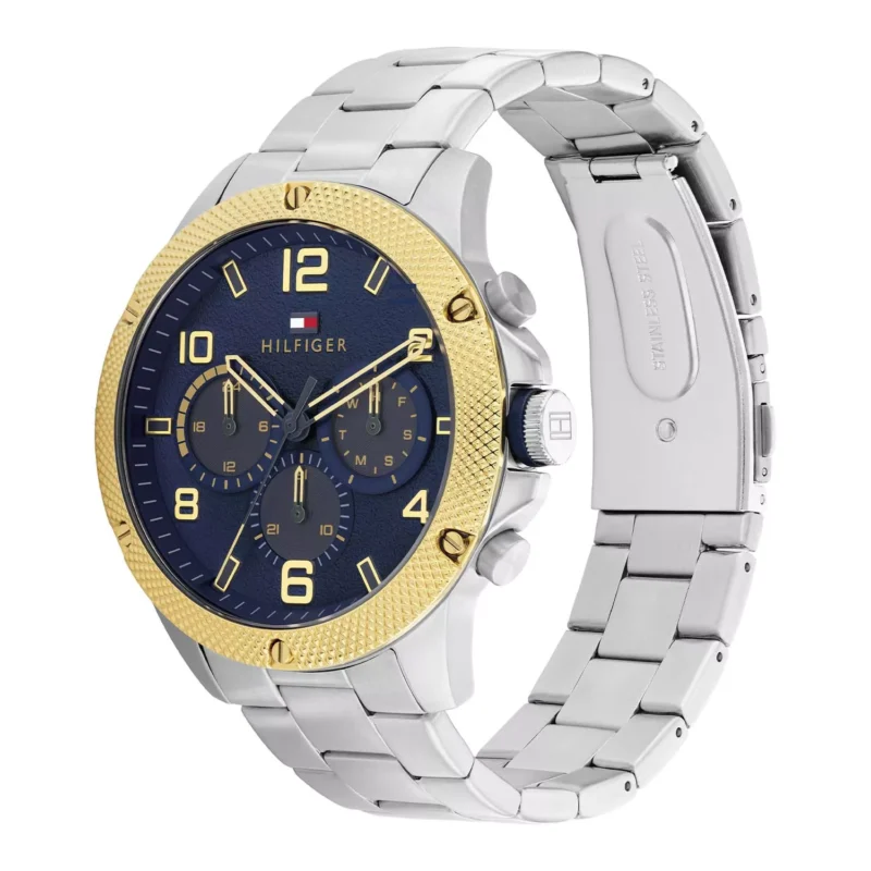 ساعة تومي هيلفيغر للرجال أصلية موديل 1792031 لون ازرق و استيك معدن ستانلس لون فضي.
