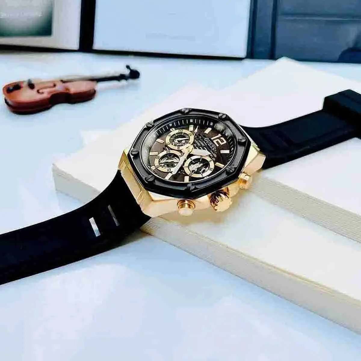 - عرض التاريخ: ساعة جيس Guess تأتي مع عرض للأيام والشهور، مما يضيف إليها المزيد من الوظائف العملية التي تسهل عليك متابعة الوقت والتاريخ.