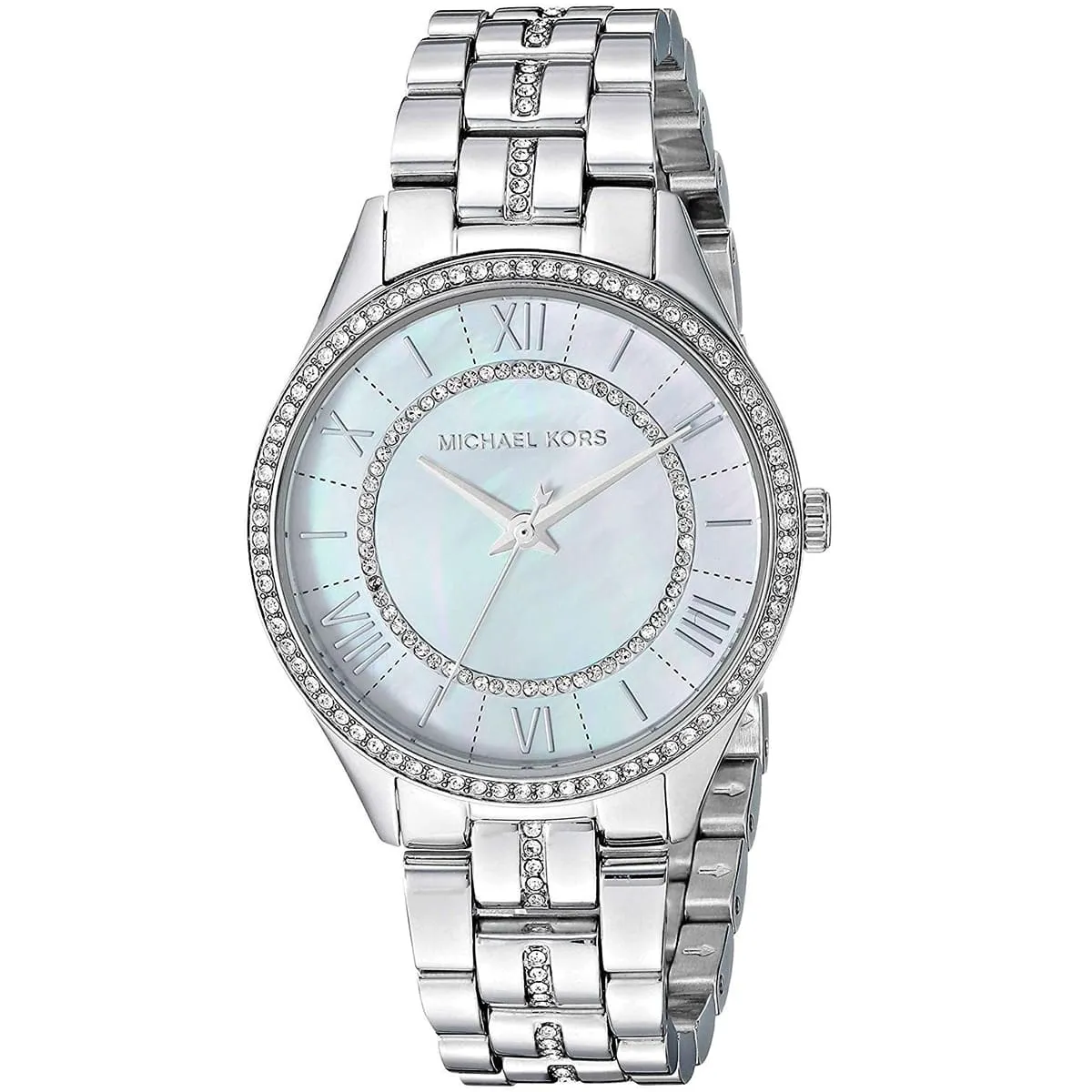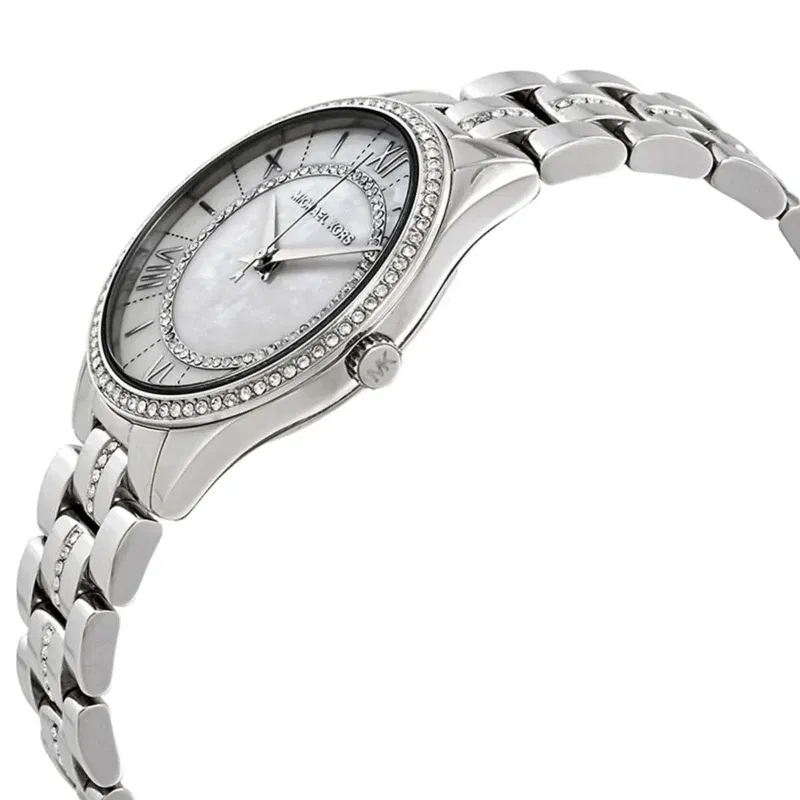 ساعة مايكل كورس Michael Kors للنساء أصلية موديل MK3900 لون ابيض و استيك معدن ستانلس لون فضي.