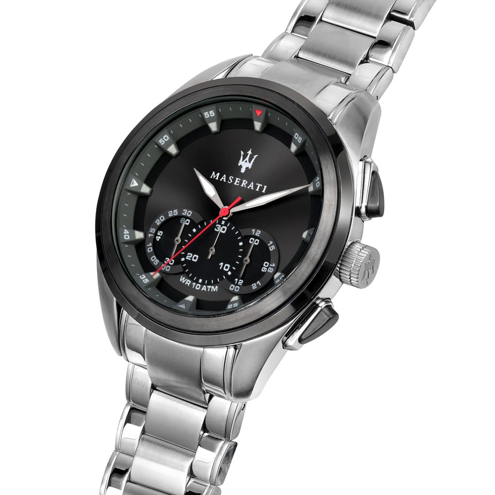 ساعة مازيراتي رجالي أصلية موديل (تراجواردو) R8873612015 Traguardo بلون اسود و استيك معدن ستانلس ستيل بلون فضي